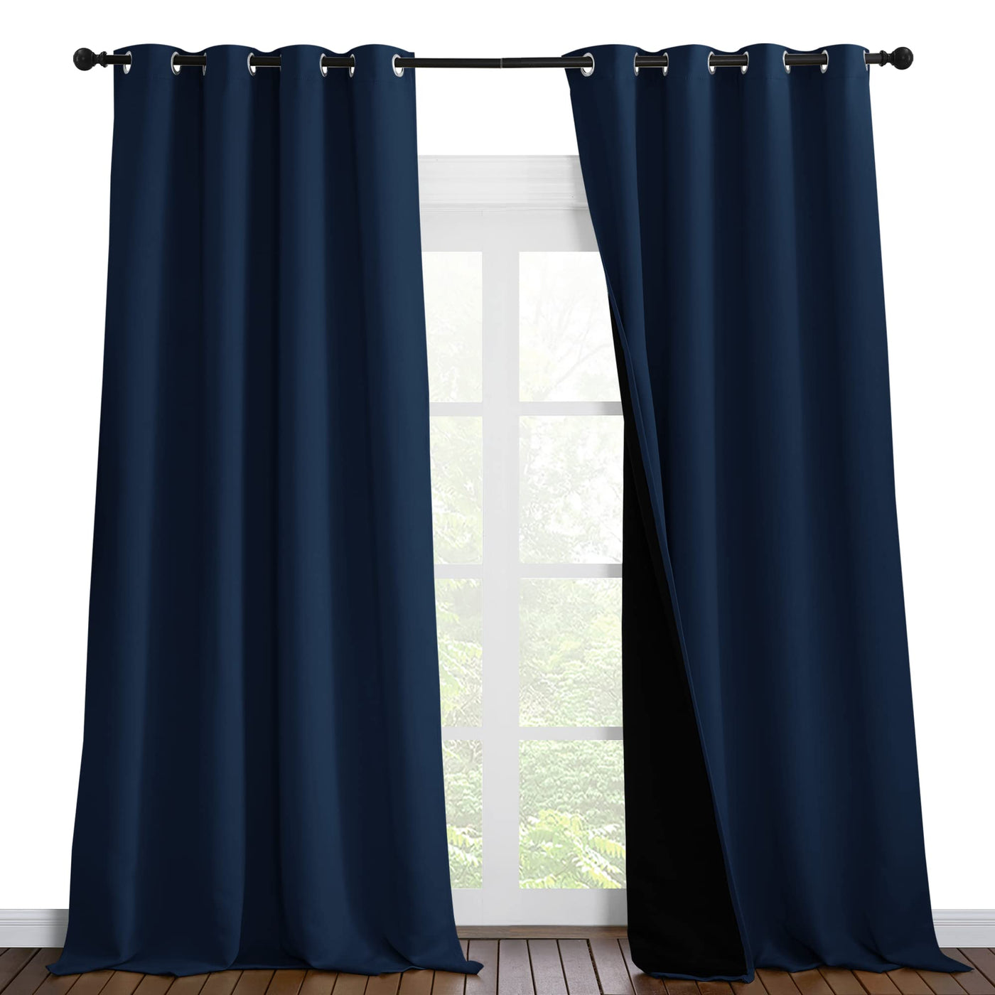 No Matter Where You Live, California, Texas Or Even Florida, If You Have The Annoying Sunshine Of Torture, And Need A Completely Dark Sleep Environment, Choose Our 2 Layers Lined Curtains. No Matter How Strong The Unwanted Light Was, You Can Have A Good Sleep.Different From Other Regular One Layer Blackout Curtains, Nicetown Thermal Insulated Blackout Lined Curtains Go Beyond That Mundane Function And Provide The Best Benefits.Fit Nicely:Package Includes 2 Panels Blackout Drapes With Black Liner Backing. 1.6' Grommet Fits Various Standard Or Decorative Curtain Rod/Pole.Due To Grommet Design, Remember They Narrow When You Put Them On A Pole. Become Shorter Because Of Sewn Into A 3-Inch Header With Grommets.Particularly Suitable: Living Room, Kitchen, Bedroom, Baby Room, Villa, Hall, And Department, Etc.Multifunction:Lined Draperies Are Thick Enough To Blocks Out Unwanted Light Completely And Noise, Encouraging Day Sleepers And The Ones Who Have Trouble Falling Asleep Have A Good Sleep.Not Only That But Also Make Your Resting Zone Truly Blissful. They Would Be Perfect For Any Home Theater And Supply You With The Enjoyment Of Watching Tv In Real Darkness. The Sophisticated Designs Allow You To Brighten Your Home Decor, Making Your Living Space More Lively. Protect Your Furniture, Floors, And Artwork From The Ravages Of The Sun.Lined Grommet Curtains Have Kept The Room Much Warmer In Winter And Also Block A Lot Of Heat During Summer, Relieving The Strain On Home Heating And Cooling While Reducing Energy Budget.Tips:Machine Washable, Recommended Hand Wash Or Dry Cleaning. Wash The Water Temperature Below 86?.Advocate For The Use Of Flexible Detergents, No Bleaching. Low-Temperature Ironing If Necessary.Note: Due To Different Screen Displays, The Color Of The Actual Item May Vary Slightly From The Above Images.