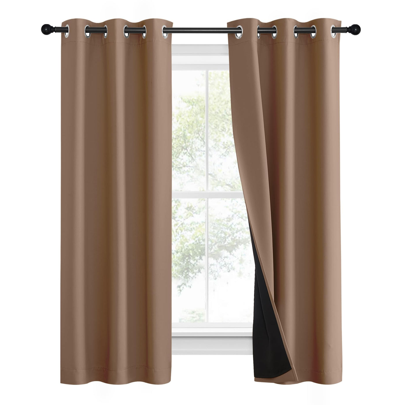 Nicetown 100% Blackout Curtains Thermal, Noise Reduction And Privacy Curtains For Patio Door, Black Lined Blackout Drapes With Grommet Top, Cappuccino, 1 Pair, W37 X L60