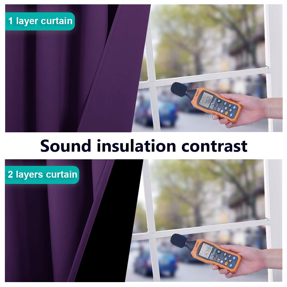 Nicetown 100% Blackout Curtains With Black Liner Backing, Thermal Insulated Curtains For Living Room, Noise Reducing Drapes, Royal Purple, 37' Wide X 40' Long Per Panel, Set Of 2 Panels