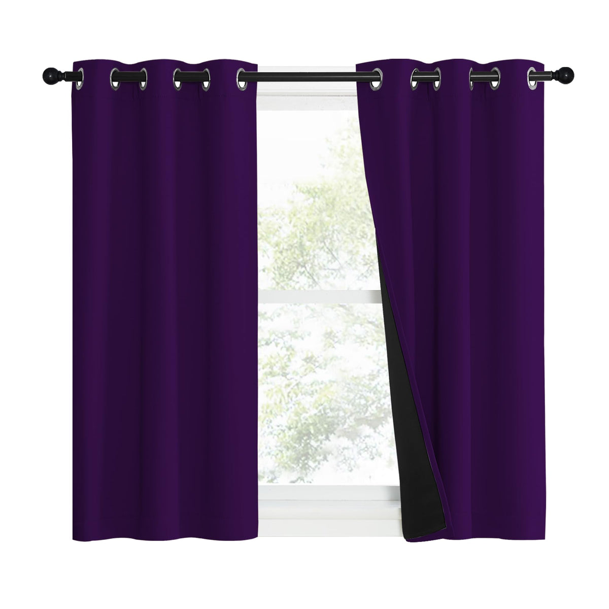 Package includes 2 panels blackout drapes with black liner backing. 1.6' Grommet fits various standard or decorative curtain rod/pole.