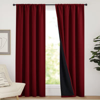 Nicetown 100% Blackout Curtains With Black Liner Backing, Thermal Insulated Panels For Living Room, Noise Reducing Drapes, Burgu