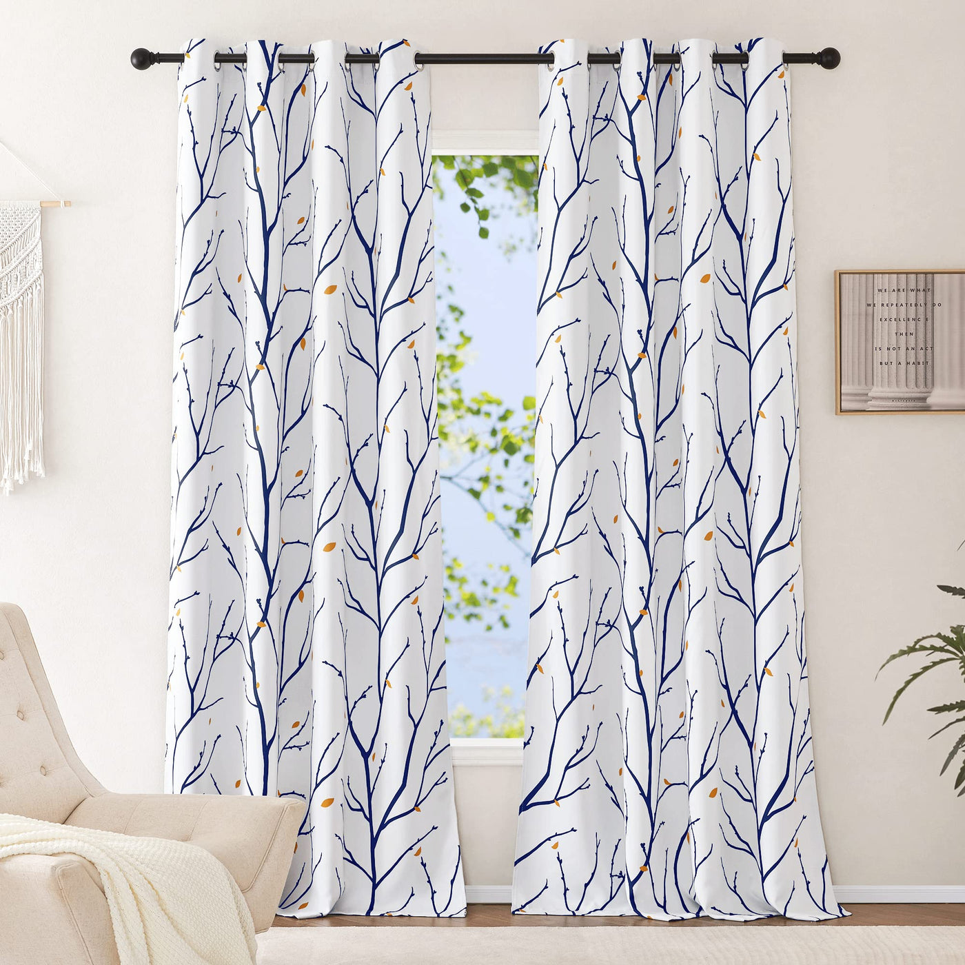 Nicetown Abstract Branch Curtains Extra Long 95' L, Grommet Top Room Darkening Window Drapes Elegant Petal Rain White Window Tr