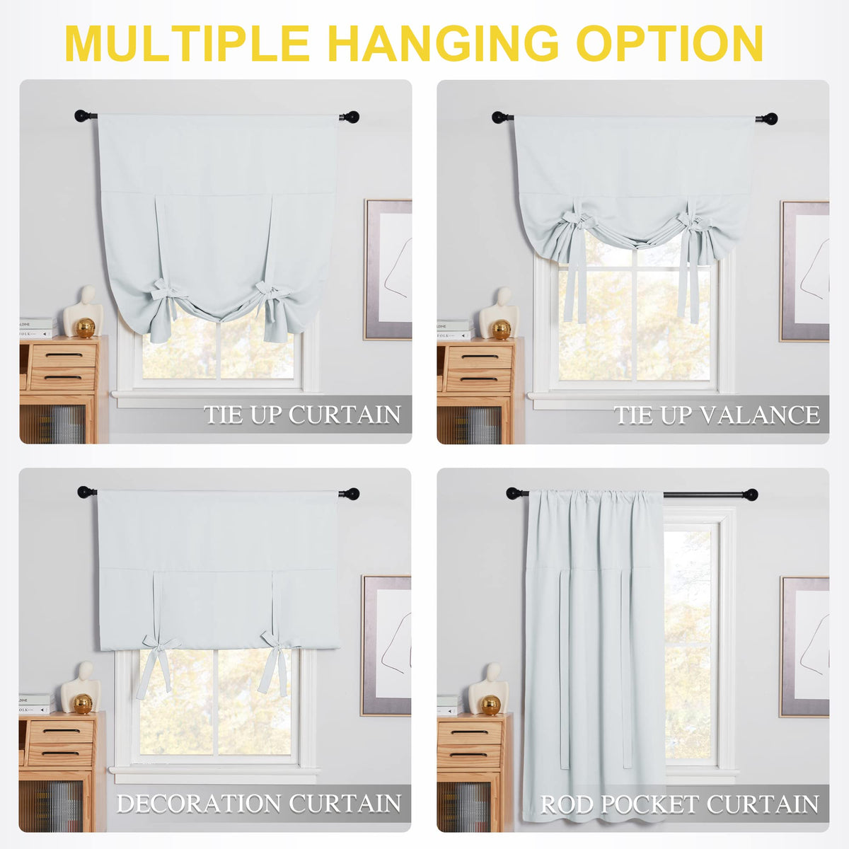 With Nicetown Rod Pocket Tie Up Shade, There Is More To It.Fit Nicely:Package Includes 1 Panel Tie Up Shades With 40'' Width X 54'' Length, The Same Color As Front. 3'' Pocket Fits Various Standard Or Decorative Curtain Rod/Pole.Particularly Suitable: The Small Window In The Basement, Living Room, Kitchen, Bedroom, Bathroom, Department, Etc.Performance:Different From The Other Ordinary Lightweight Fabric, Nicetown Tie Up Shade Drapes Are Used Super Soft Innovative Triple-Weave 200 Gsm Polyester Fabric, So Our Products In Terms Of Shading And Sound Insulation Better.Elegant Tie Up Shade Blocks Out Unwanted Light. Triple Weave Blackout Fabric Balances Room Temperature By Insulating Against Summer Heat And Winter Chill. The Sophisticated Designs Allow You To Decorate Your Windows With Great Styles. Protect Your Furniture, Floors, And Artwork From The Ravages Of The Sun.Tips:Curtains Are Made To Last. Machine Washable In Cold Water, Tumble Dry. Quick Iron Or Steam Clean When Needed.Search Nicetown For A Video On How To Tie A Bow.Note: Due To Different Screen Displays, The Color Of The Actual Item May Vary Slightly From The Above Images.