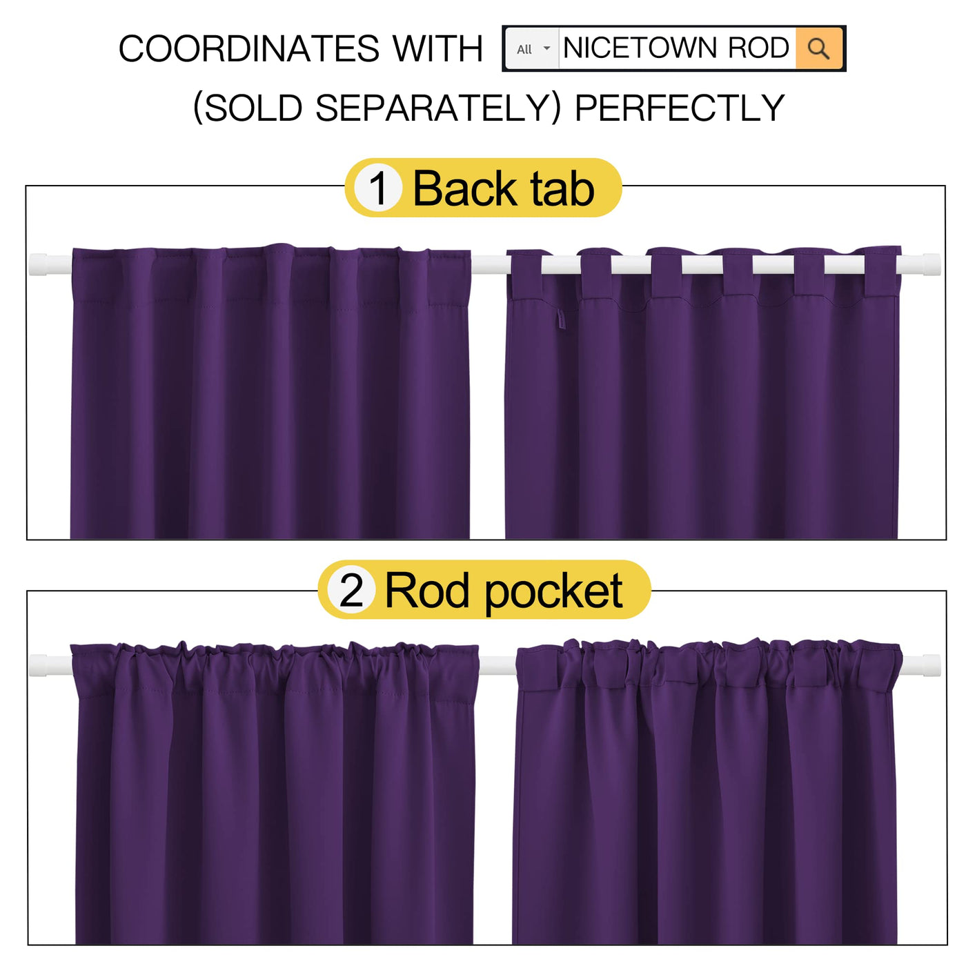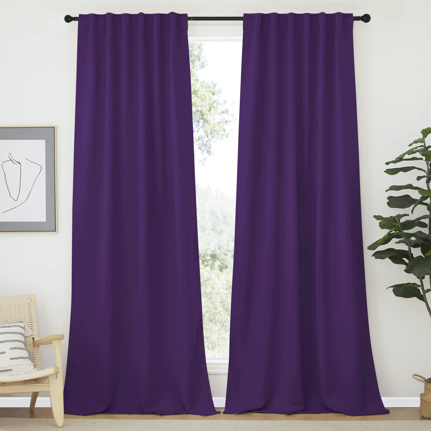 Nicetown Bedroom Blackout Draperies And Window Treatment- (Dark Royal Purple Color) 52 Width X 95 Length, 2 Panels Set, Solid Blackout Curtain Panels