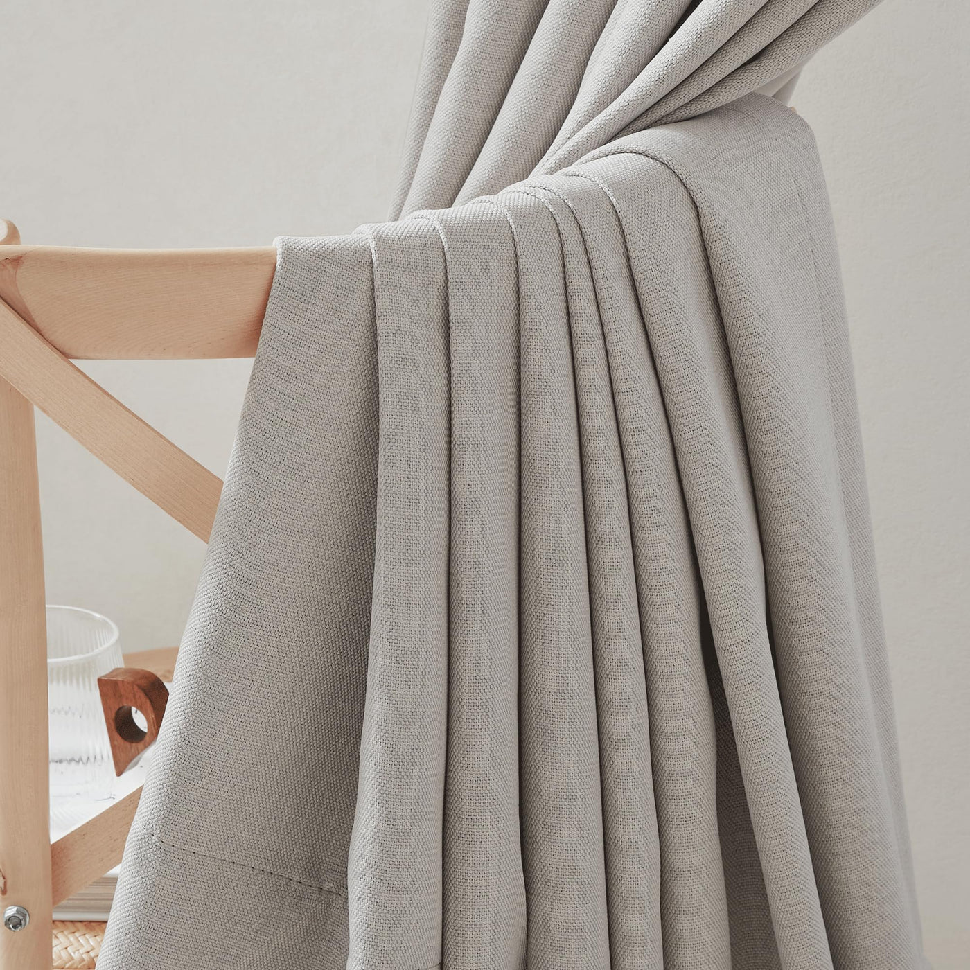 Q: How do these curtains help with light blocking and privacy?A: These curtains are designed with luxury faux linen textured fabric that effectively blocks most sunlight and heat, ensuring 100% privacy for your space. They are ideal for achieving a darkened room, making them perfect for sleep or relaxation.