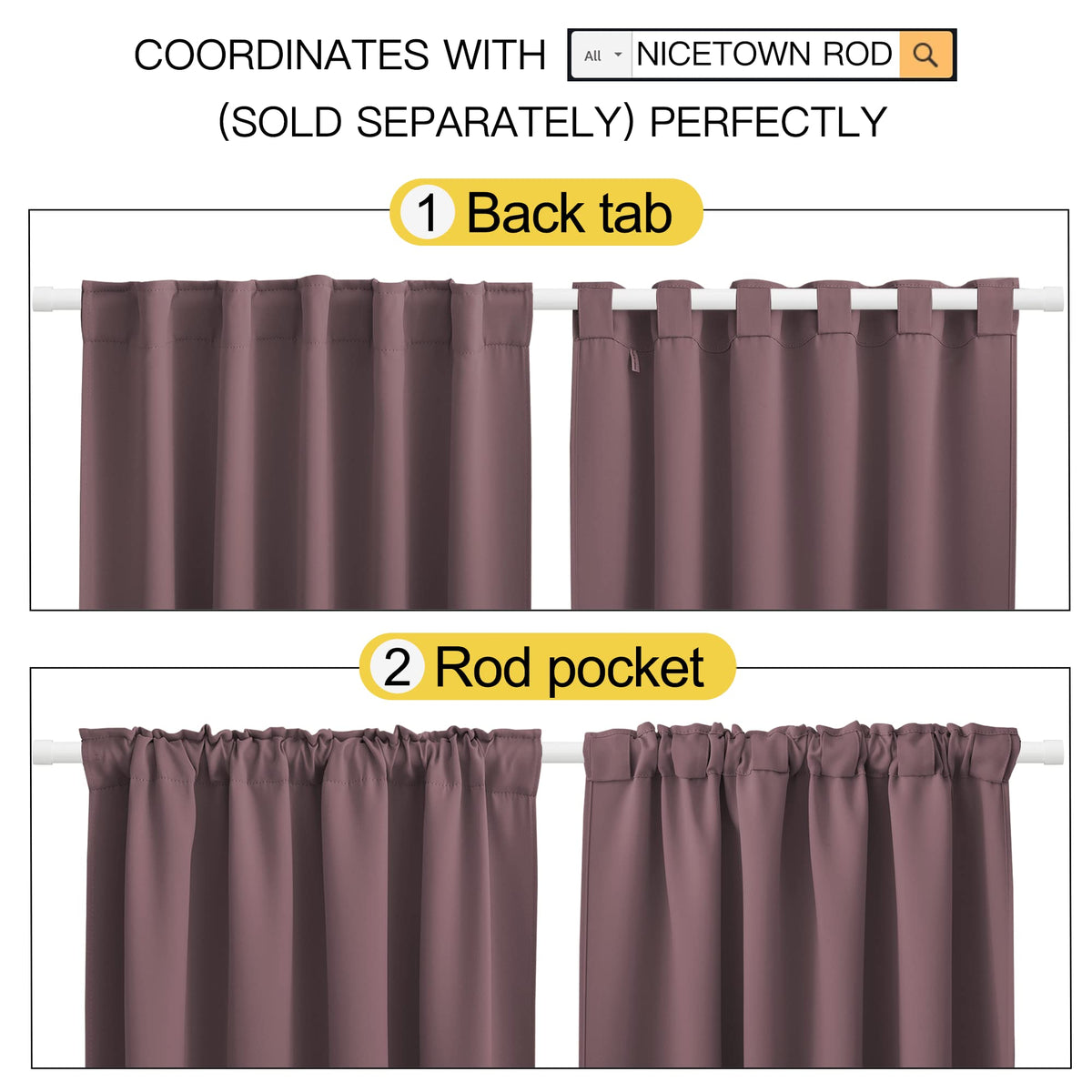 Nicetown Bedroom Curtains Blackout Curtain Panels - (Dry Rose Color) 52X95 Inch, 2 Pcs, Insulating Energy Saving Solid Rod Pocket Blackout Drapes