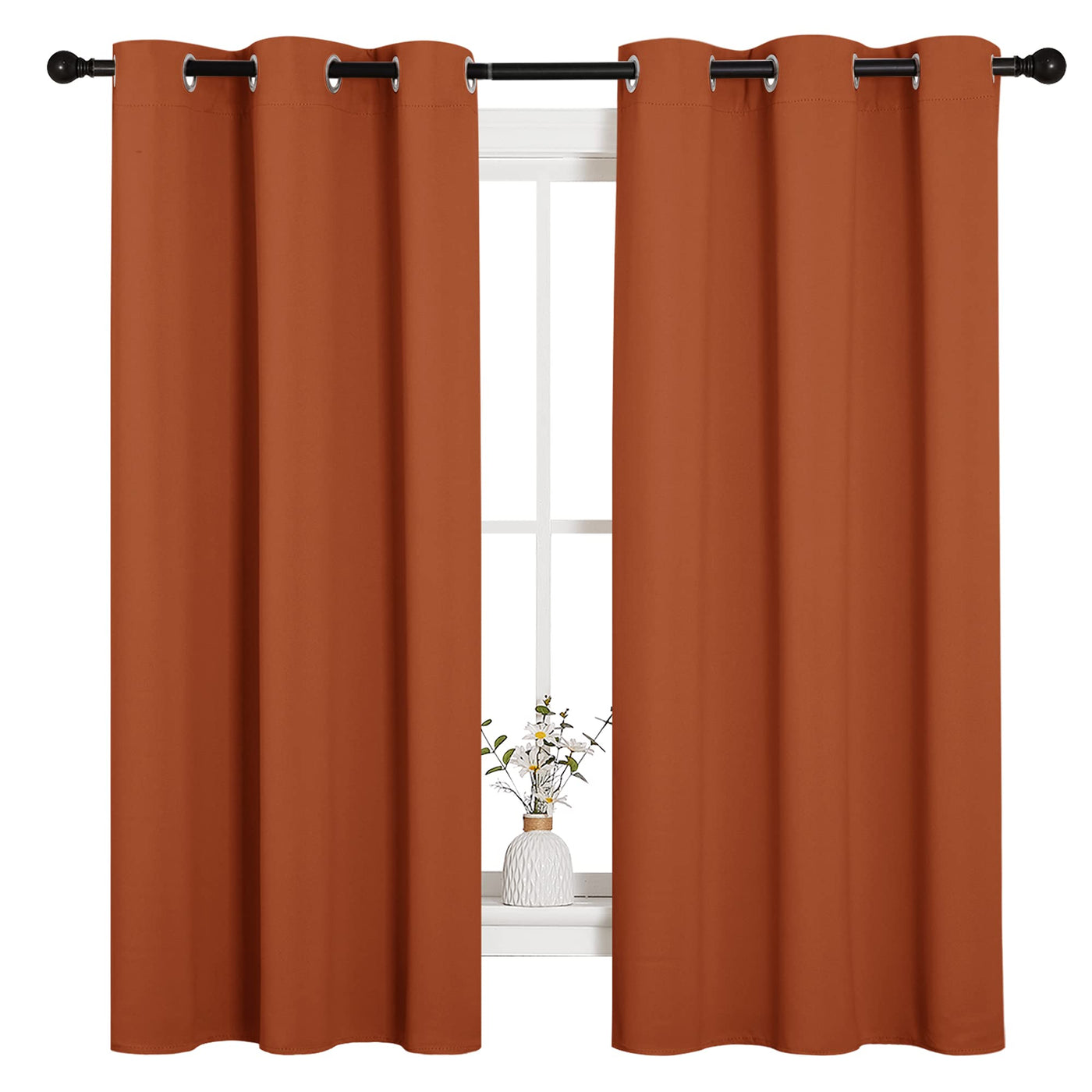 Nicetown Bedroom Halloween Curtains 63 Inches Long, Privacy And Thermal Insulated Blackout Drapes For Windows (Burnt Orange, 1 P
