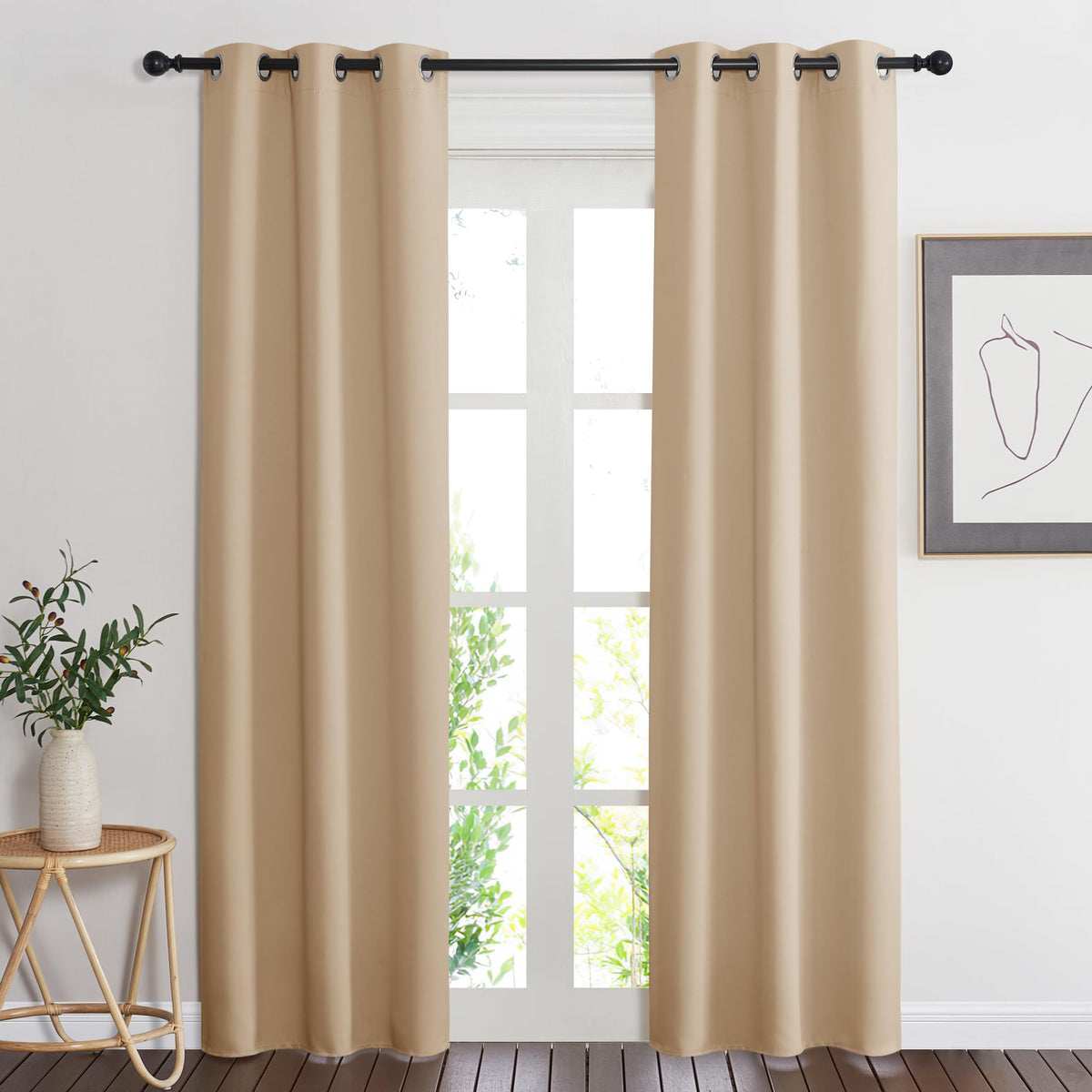 Nicetown Beige Room Darkening Curtain And Drape, Biscotti Beige, Sold Individually, 34 Inches Wide By 84 Inches Long, Energy Efficient Warmth Solid Grommet Curtain For Office & Classroom