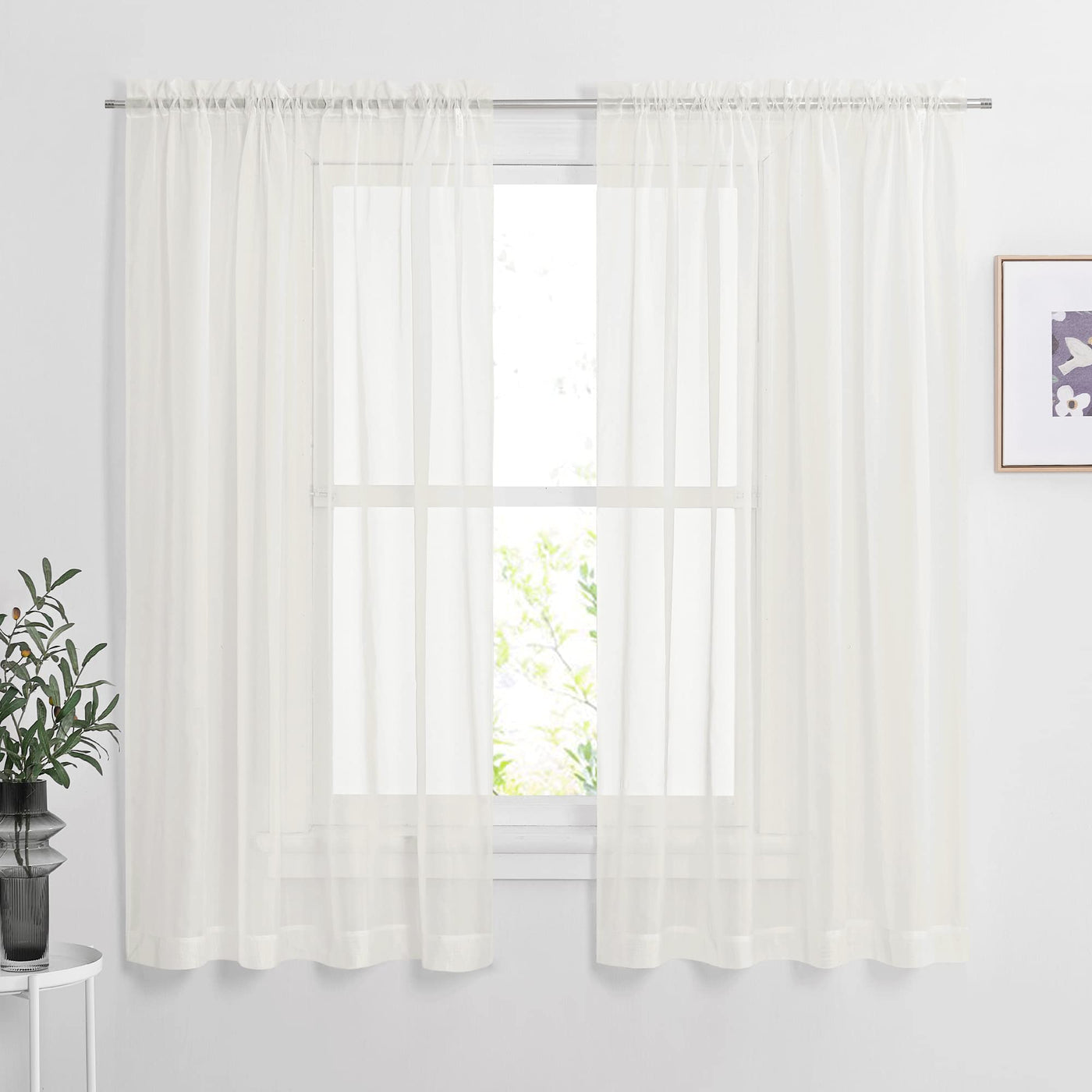This Nicetown White Voile Sheer Window Curtains Can Provide A Stylish And Casual Look To Your Home Decor With A Refined Sense. Well Styled:These Voile Sheer Curtains Measure 60' Width, With 45', 63', 84', 95' Lengths Are Available, Sold By 2 Pieces. Rod Pocket Panel With 1.5' Pocket Fits Easily With Standard Curtain Rods, Allows You Easy To Hanging And Sliding. Good Performance:The Fabric Is Very Clear With No Visual Flaws And Extremely Soft To Touch.The Sheer Panels Come In Solid Colors That Open Effortlessly To Let Natural Light In, Boasts An Elegant Design That Perfectly Complements Any Room. So The Sheer Curtain Is Ideal For Baby'S Nursery, Your Daughter'S Princess Bedroom, Guest Bedroom, Or Any Spaces Where You Want To Add Natural Light And Textured Style.As The Sun Pours Into Your Home Through The Sheer Design, The Sheer Rod Pocket Panels Will Stand Out Beautifully.Easy Care:Voile Polyester Construction Ensures That This Item Is Long-Lasting And Easy To Maintain. Machine Washable Or Dry Clean. Quick Iron Or Steam Clean When Needed.About Nicetown In The Nicetown Store, Different Styles Of Sheer Curtains, Valance, Blackout Curtains, And So On Can Match Your Variety Of Demand, Look Forward To Your Visiting.