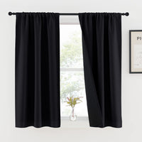 Nicetown Black 100% Blackout Curtains 45 Inches Long For Kitchen, Rod Pocket Basement Completely Blackout Window Treatment Therm