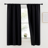 Nicetown Black 100% Blackout Lined Curtains, 2 Thick Layers Completely Blackout Rod Pocket Thermal Insulated Drapes For Kitchen/
