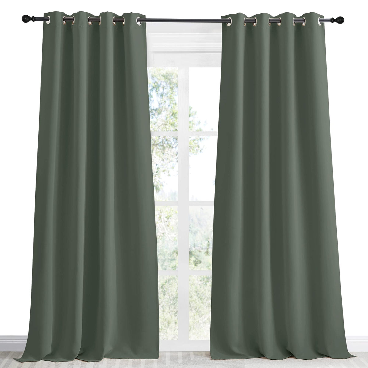 Nicetown Blackout Curtain For Living Room 96 Inch Long, 1 Panel, Dark Mallard, W55 X L96, Grommet Thermal Insulated Room Darkening Sound Proof Curtain For Bedroom/Kids Room