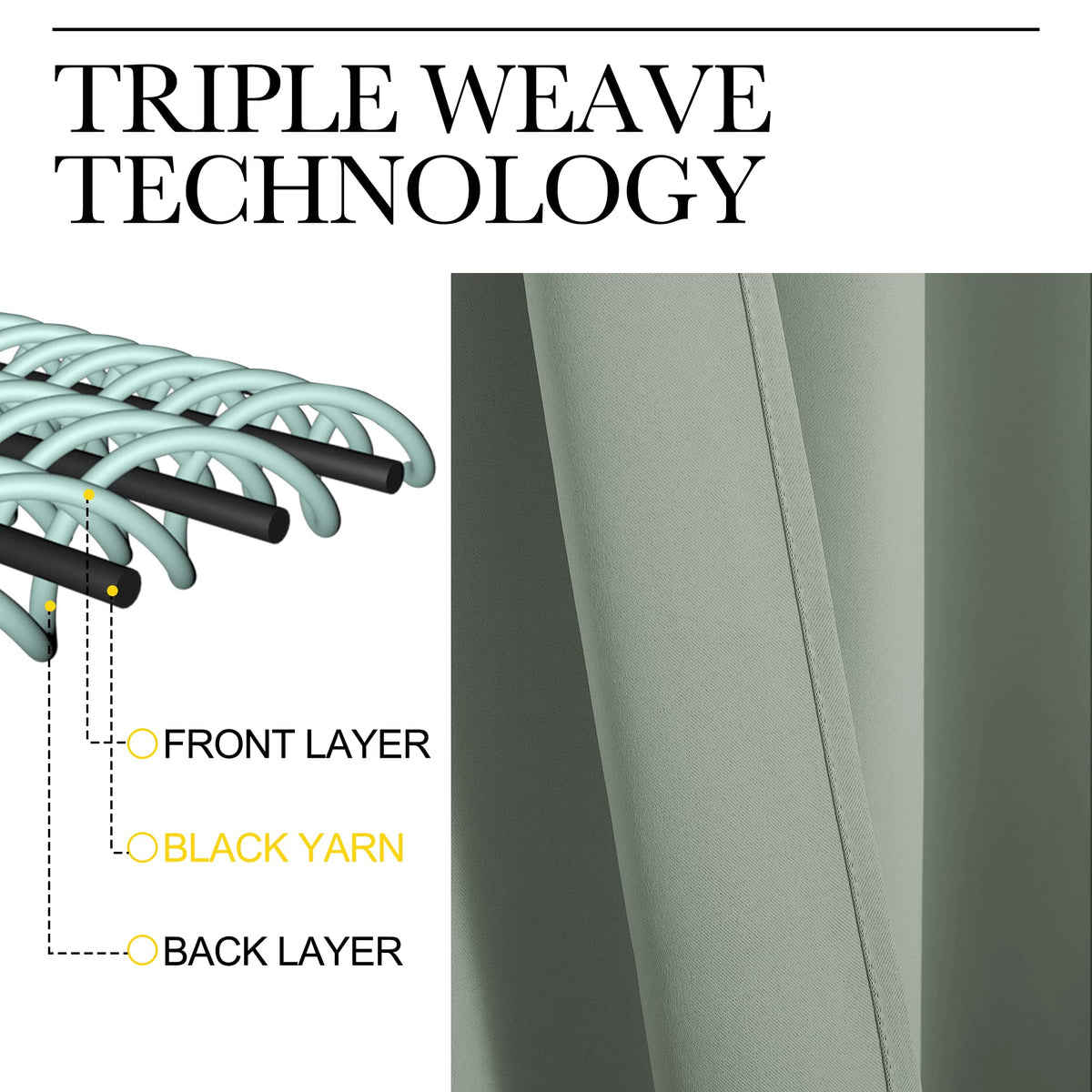 FABRIC & DESIGN Super soft innovative triple-weave 200 GSM polyester fabric feels thick and expensive. The same material back as of front makes it appear more elegant. The sliver Grommet top (inner diameter is 1.6-inch) adds a modern touch and fits various standard curtain rod.