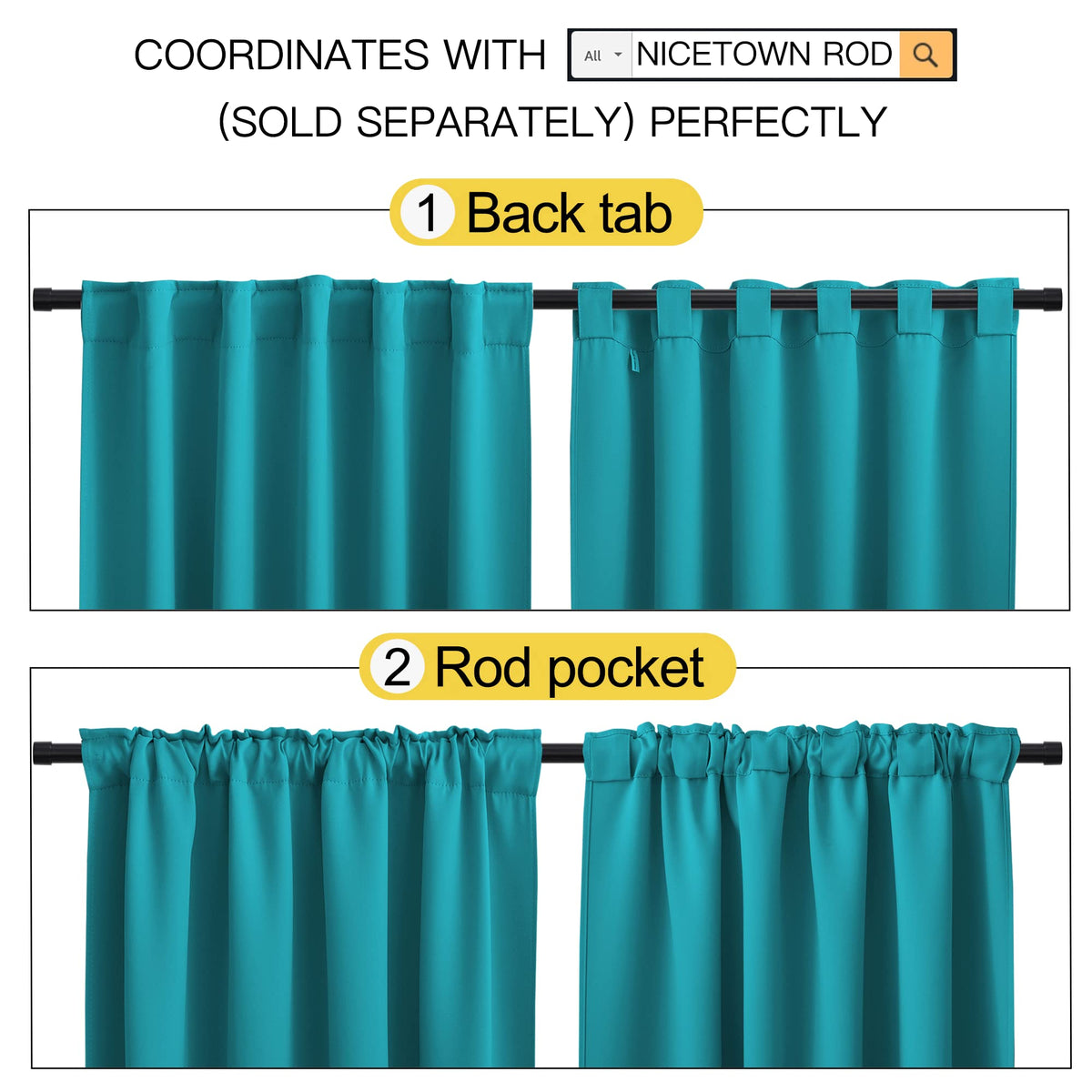 Nicetown Blackout Curtains 84 Inches Long For Living Room, Rod Pocket & Back Tab Window Curtains, Eatra Long Drape Panels For Office (Peacock Teal, 70' W X 84' L Per Panel, 2 Pcs)