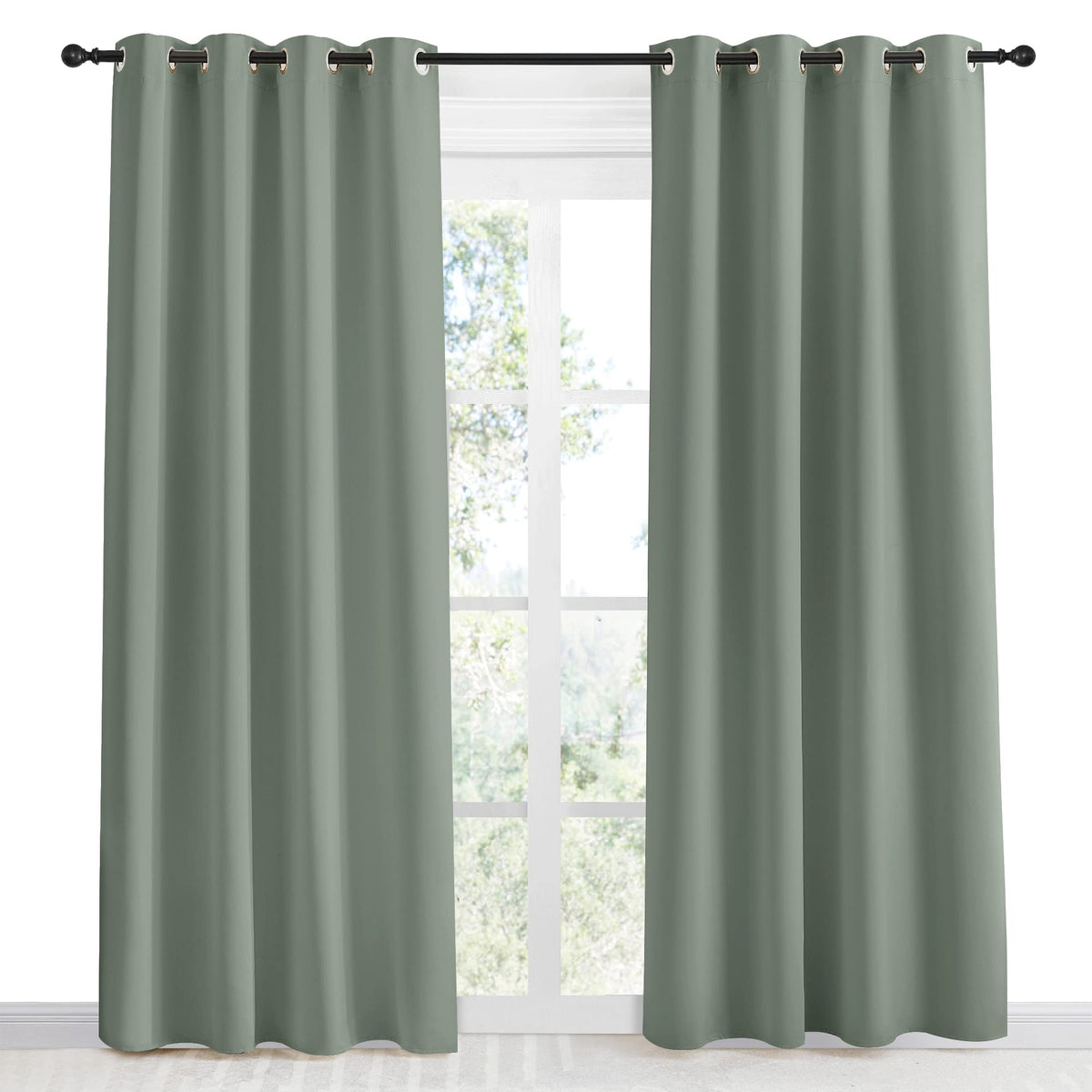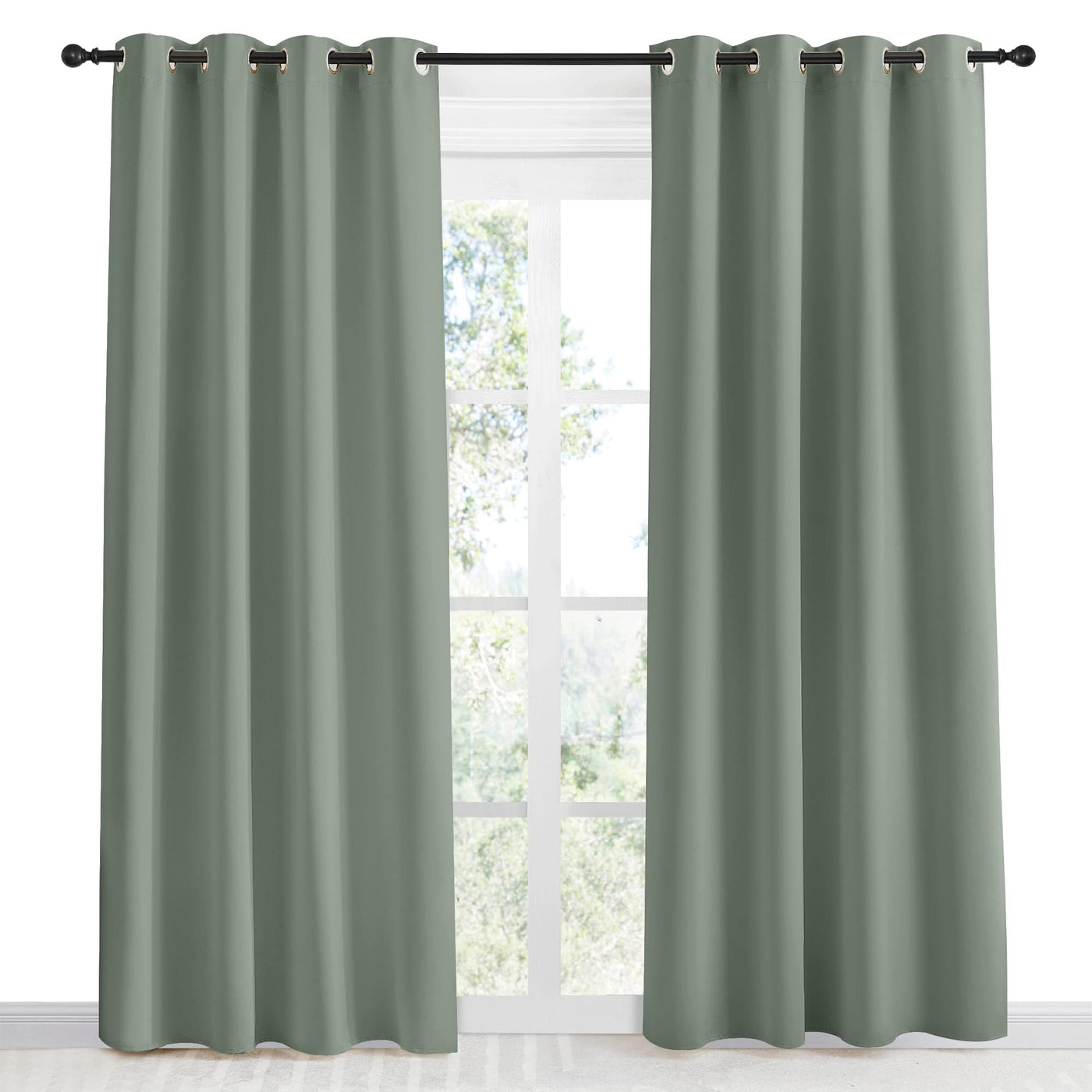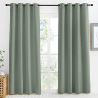 Nicetown Blackout Greyish Green Curtain 86 Inch Length For Bedroom, W55 X L86, 1 Panel, Thermal Insulated Grommet Room Darkening Window Drape Sound Dampening For Living Room