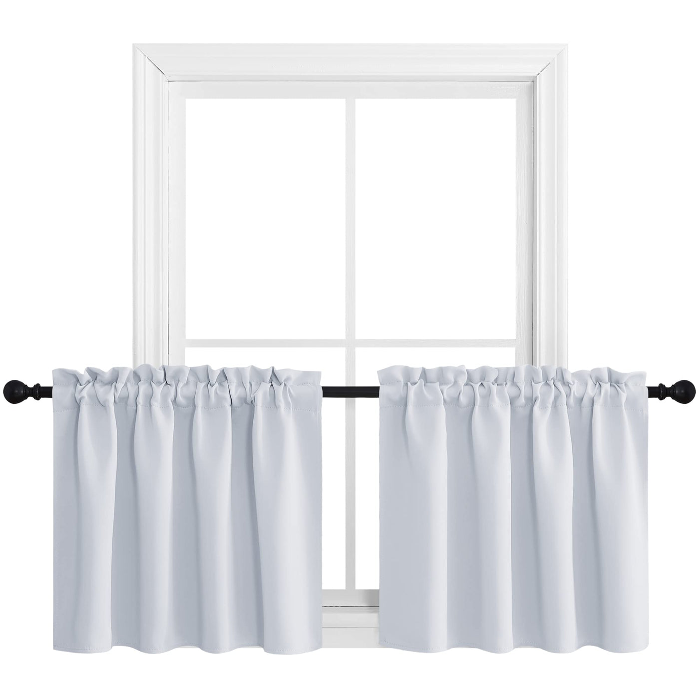 Nicetown Blackout Kitchen Curtains Room Darkening Thermal Insulated Short Window Curtains Adjutable Rod Pocket Curtains For Cafe/Bathroom, 42W X 24L Inches + 1.6 Inches Header, Greyish White, 2 Pcs