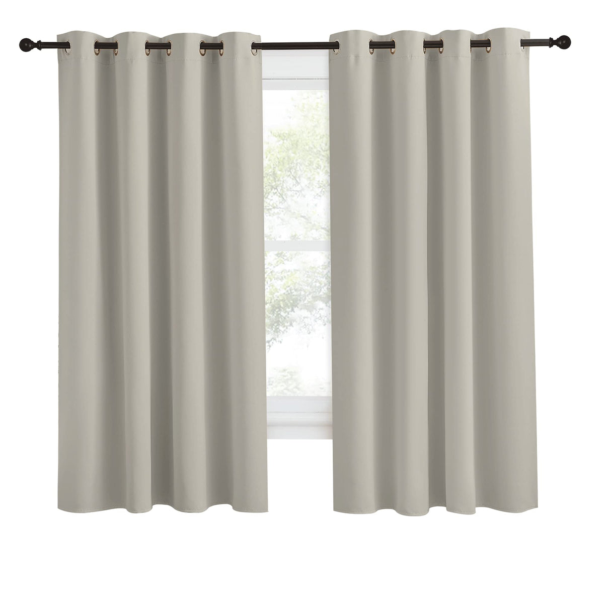 Nicetown Blackout Natural Curtain For Living Room, 1 Panel, W55 X L68, Thermal Insulated Solid Grommet Sound Reducing Energy Saving Window Drape For Bedroom/Dining Room