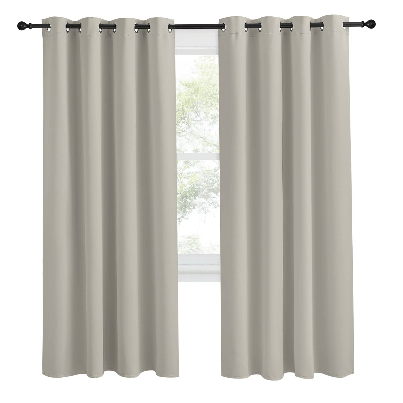 Nicetown Blackout Natural Curtain For Living Room, 1 Panel, W55 X L78, Thermal Insulated Solid Grommet Sound Reducing Energy Saving Window Drape For Bedroom/Dining Room