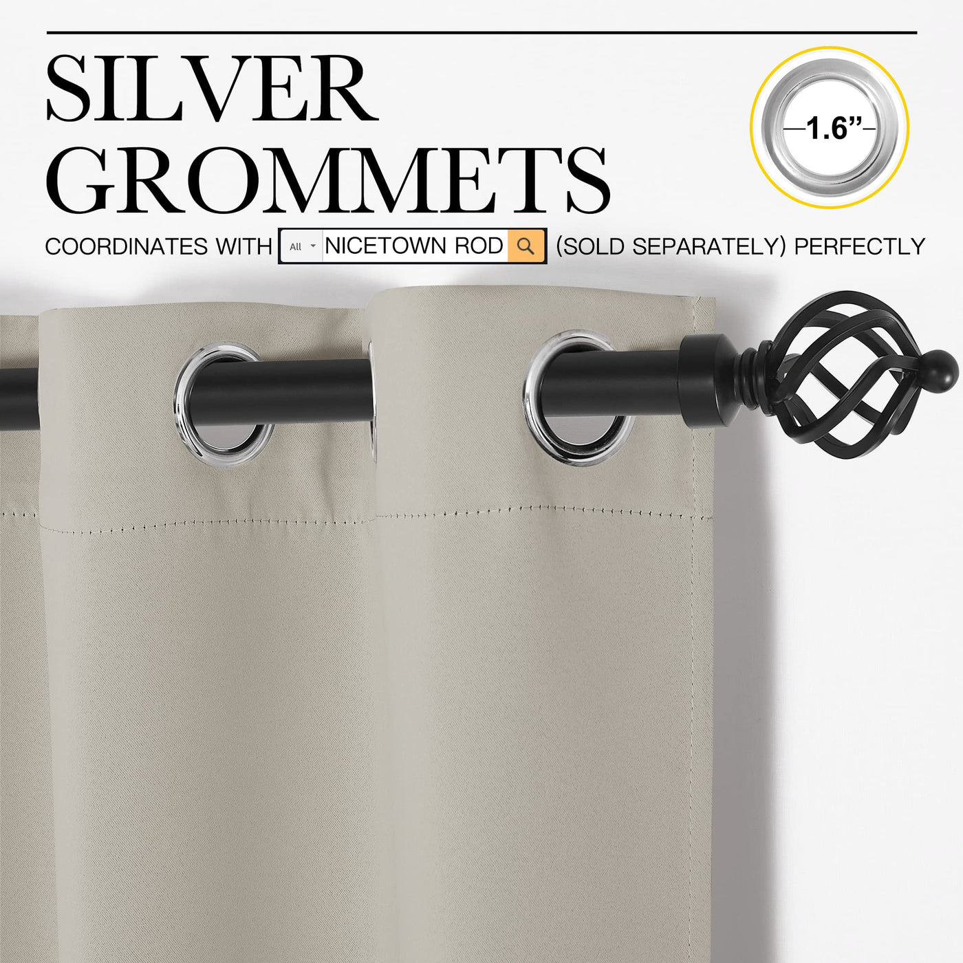 Nicetown Blackout Natural Curtain For Living Room, 1 Panel, W55 X L96, Thermal Insulated Solid Grommet Sound Reducing Energy Saving Window Drape For Bedroom/Dining Room