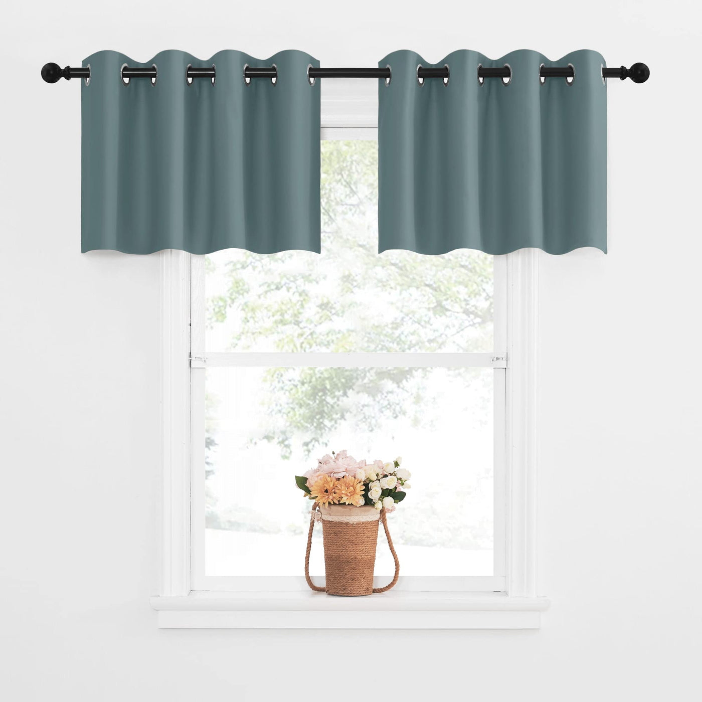 Nicetown Blackout Tiers Small Valance Curtains, Short Kitchen Curtain Room Darkening, Grommet Top Small Window Topper Treatment For Living Room/Bedroom/Basement(1 Panel, 52X18 Inches, Greyish Blue)