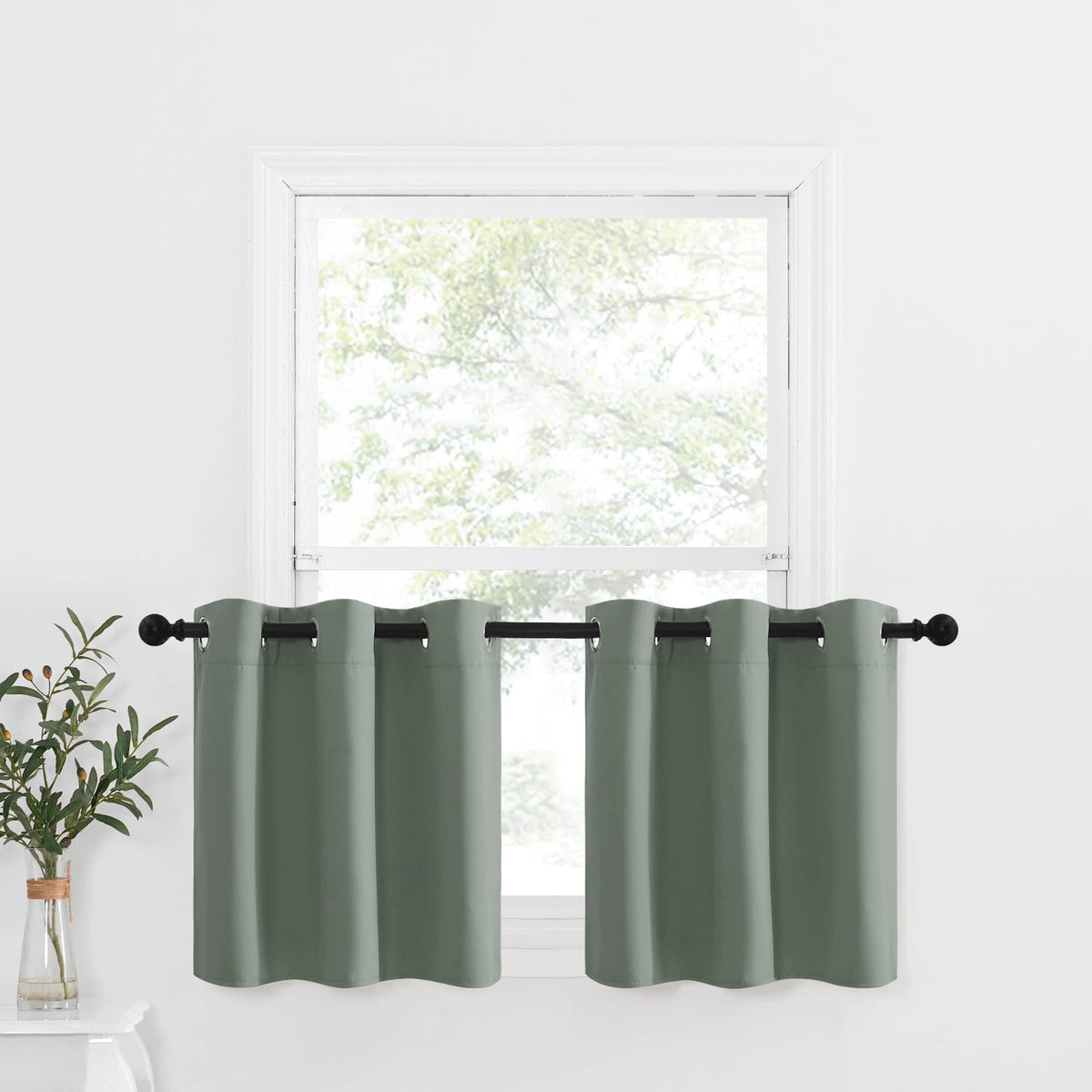 Nicetown Blackout Tiers Valances For Bathroom, Farmhouse Style Kitchen Curtains For Small Windows, Thermal Insulated Short Curtain Drapes For Half Window, 2 Pcs, 42' W X 24' L, Greyish Green
