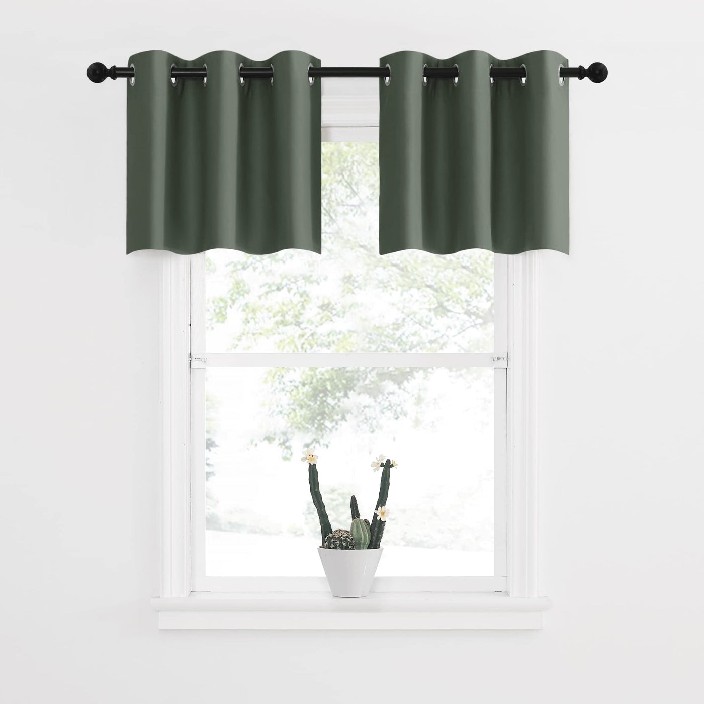 Nicetown Blackout Valance Curtains Room Darkening, Short Kitchen Curtain Valances, Grommet Top Window Curtains Topper Tiers For Bedroom/Living Room/Basement(2 Panels, 42X18 Inches, Dark Mallard)
