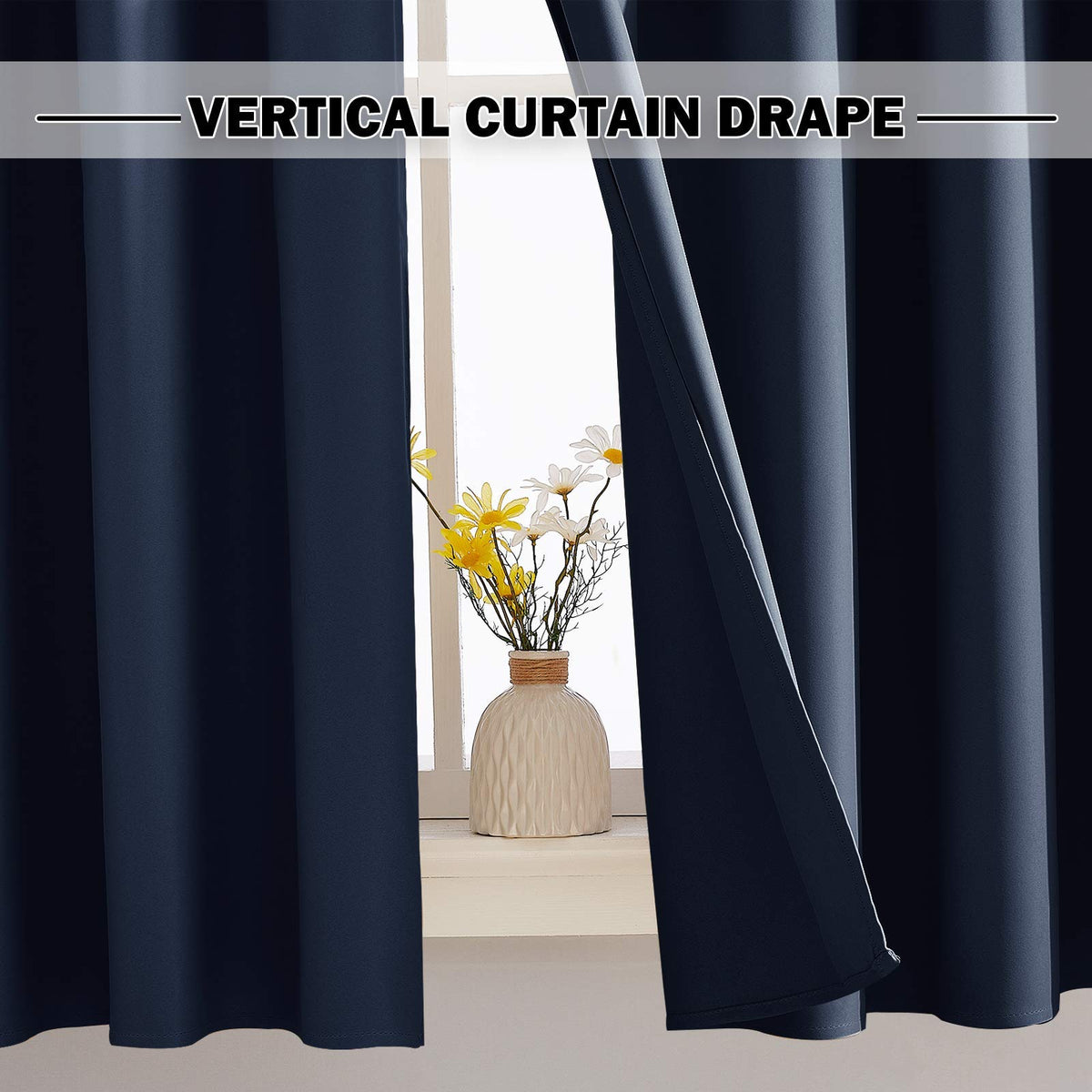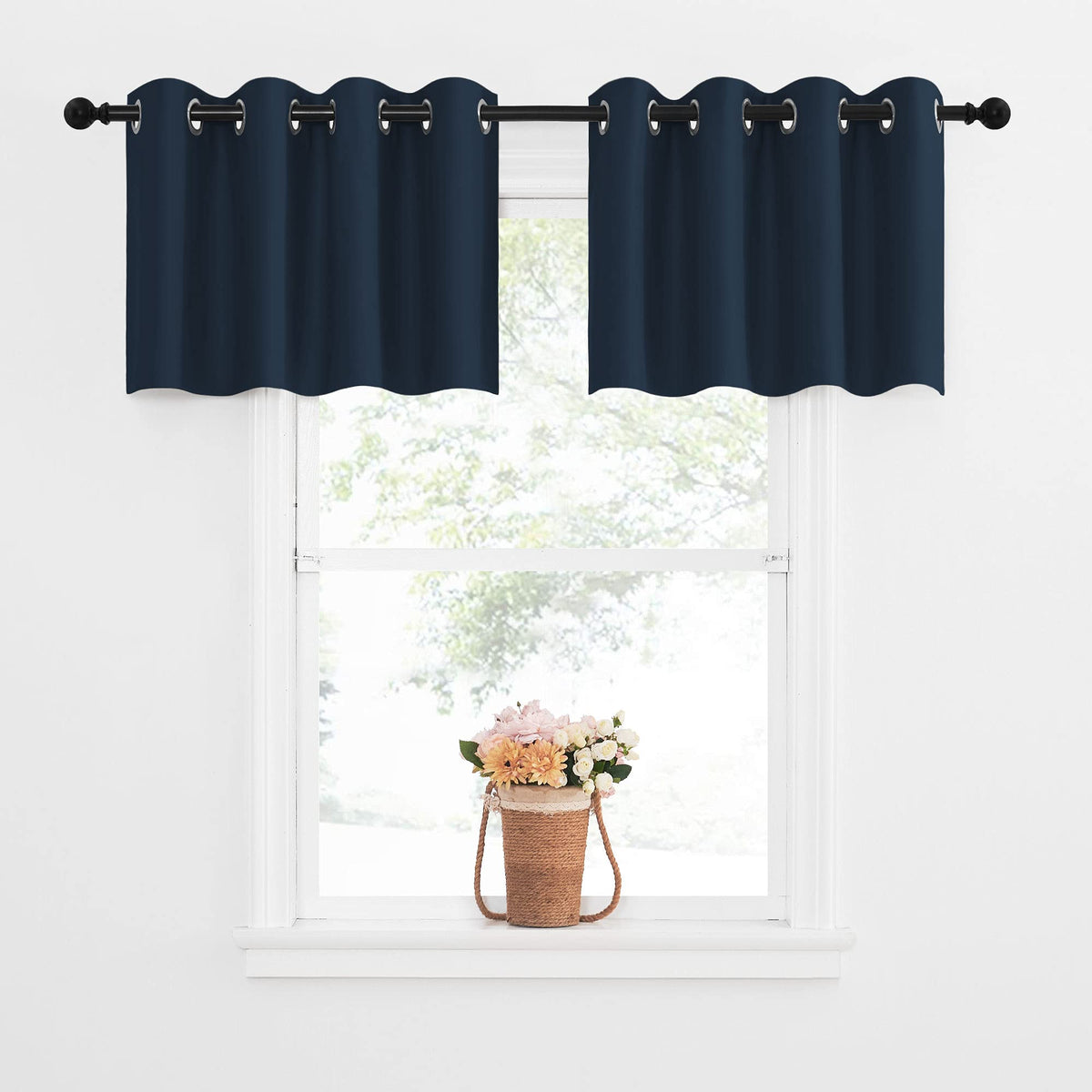 Nicetown Blackout Window Tiers Curtains Valances - Grommet Top Short Kitchen Window Treatment Curtain Topper Tiers For Kitchen/Bathroom/Living Room, 52W X 18L, 2 Panels, Navy