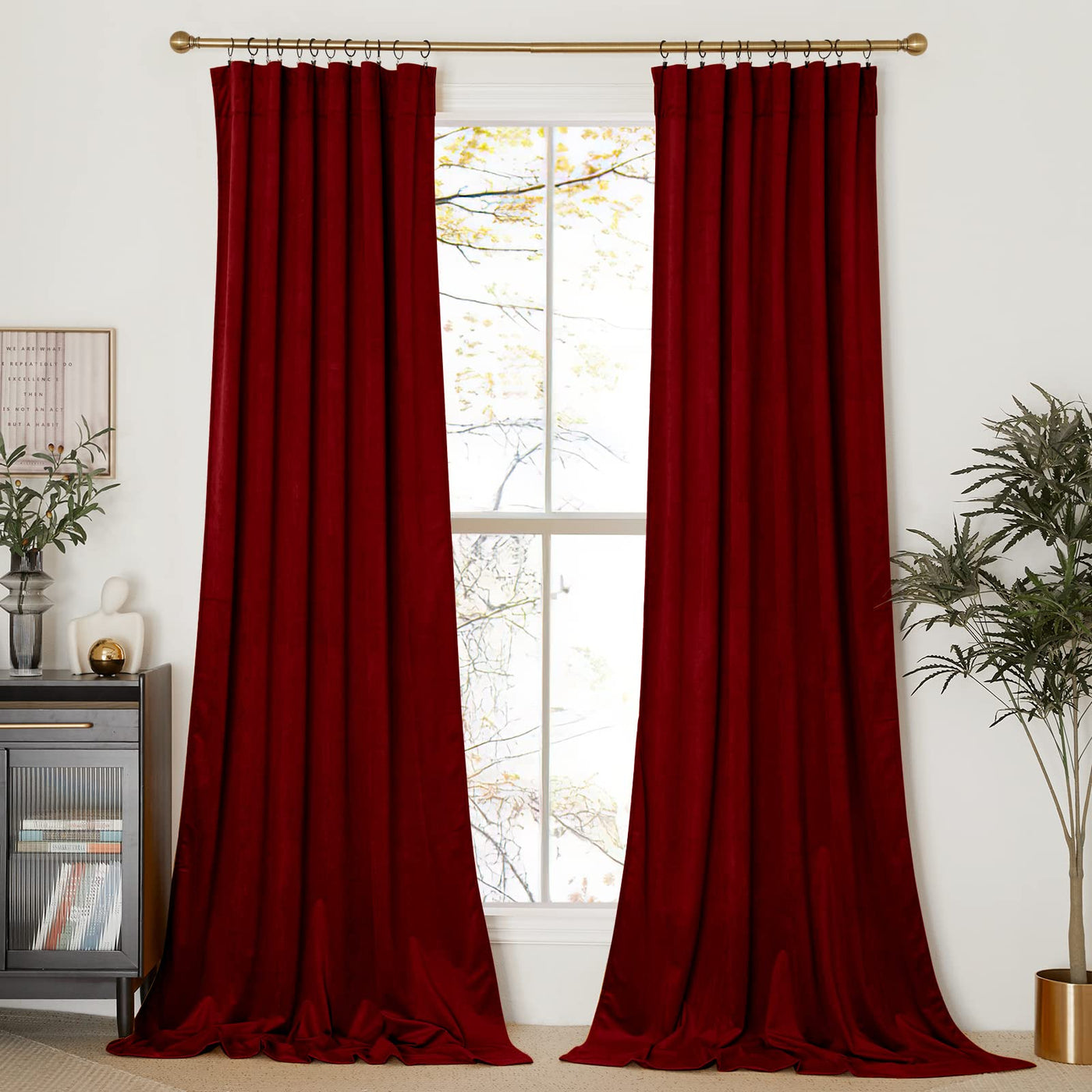 Nicetown Christmas Red Velvet Curtains And Drapes, Extra Long Elegant Wall Backdrop Drapes For Holiday Season Home Decoration (Set Of 2, Rod Pocket Design, 144 Inches Long)