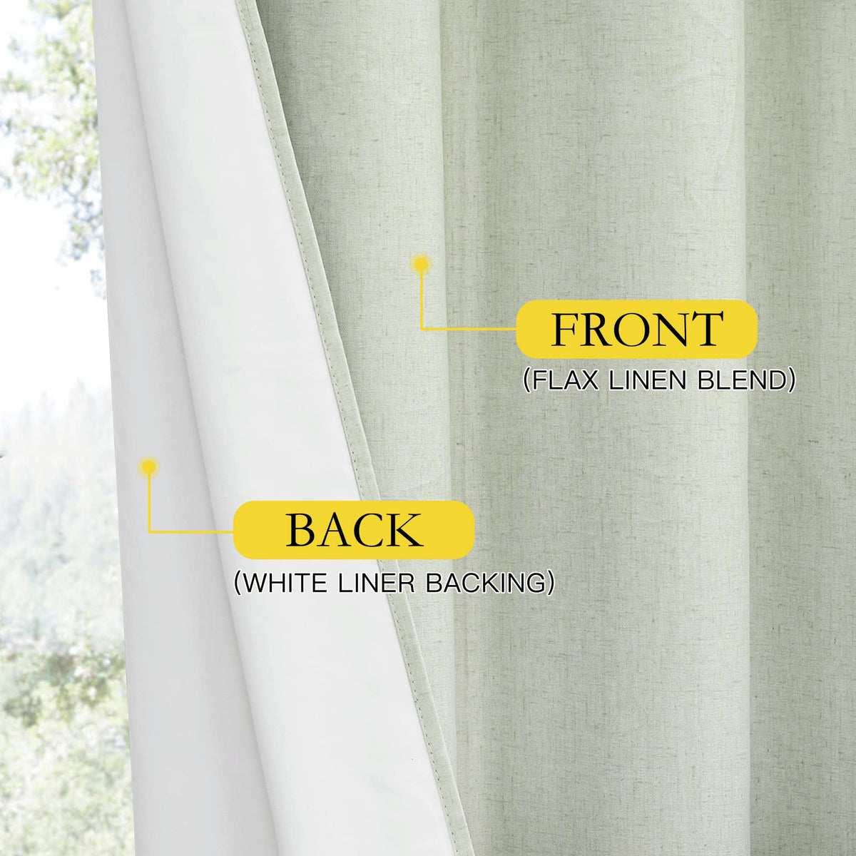 Nicetown Cold Reducing Full Blackout Sage Green Linen Curtains 108 Inches Length With Thermal Insulated Liners, 2 Panels, 52 Inches W, Farmhouse Style Keep Warm Large Window Draperies For Hall