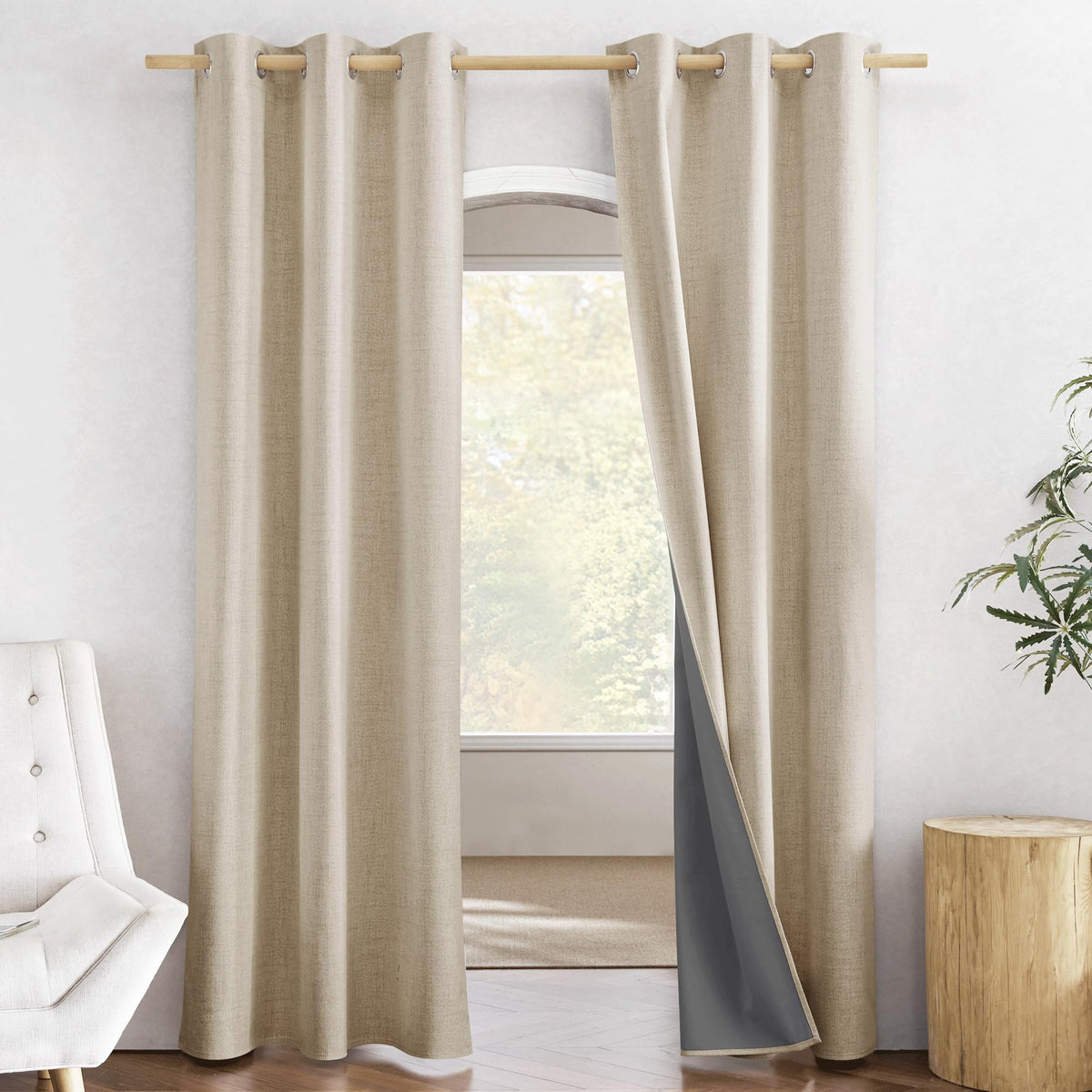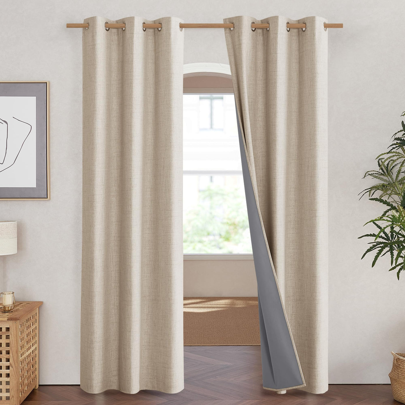 Nicetown Cream Full Blackout Boho-Chic Linen Curtains 84 Inch Long 2 Panels Set For Cafe Window, 42 Inch Wide, Thick Linen Blend Drapes, Insulated Window Covers Draperies With White Backing
