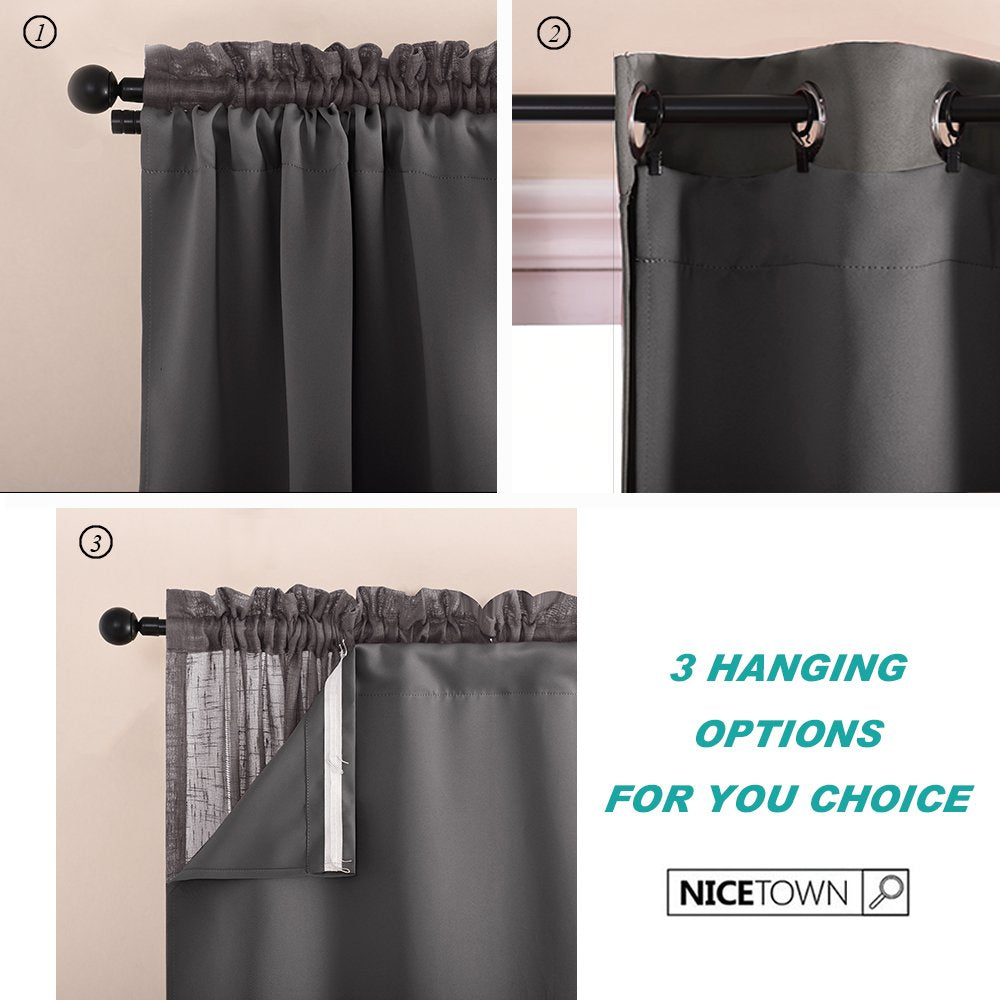 Nicetown Blackout Curtain Liner Is A Multi-Functional Curtain, You Can Put Him As An Ordinary Blackout Curtain, Also Can Be Used For Lining. If It Is Used As A Lining, It Is Recommended To Select The Closest And Smaller Size According To The Actual Size Of The Curtain, Because You Need To Leave Some Space For The Top Of The Curtain; If It Is Used Directly As A Normal Curtain, You Can Choose A Slightly Larger Size According To The Size Of The Window. This Way You Can Block Light From Entering The Room From The Edge Of The Window.Fabric & Designfabric Is Specialized Material For Optimal Blackout Feature, Feels Soft And Thick.Set Includes 2 Drapery Panels( 27'' Wide Per Panel) With A 3-Inch Rod Pocket And 12 Hooks.Fits Most Standard Window Sizes And Works With All Types Of Window Treatments.The Same Material Back As Of Front Makes It Appear More Elegant.Hang It From The Built-In Pole Pocket Or Convert It To Hang With Rings Or Clips.Good Performancenoise Reducing.Better Tv Viewing.Privacy Protection.Saves On Home Heating And Cooling Costs.Helps To Block Out Most Of The Light And Uv Ray.Protects Your Indoor Furniture From Direct Exposure To The Sun.Specific For: Late Sleepers, Shift Workers, Seniors, Infants Parents, Students, Computer Operators.Care Instruction Tumble Dry Low. Machine Washable.Warm Iron As Needed.Use Only Non-Chlorine Bleach When Needed.Smart As You, Spend Less Money Can Have To This Multi-Functional Blackout Curtains. Which Color To Choose?