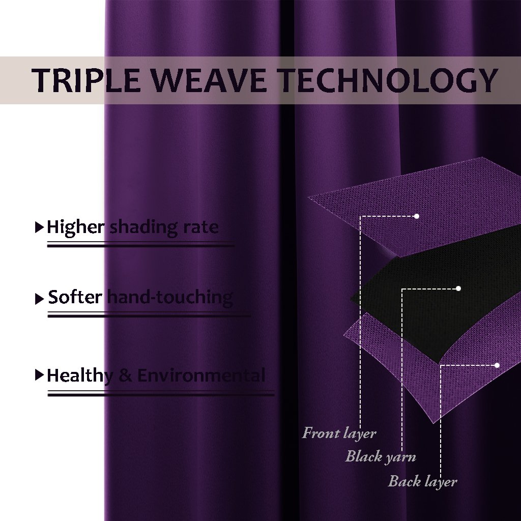 FABRIC & DESIGN Super soft innovative triple-weave 200 GSM polyester fabric feels thick and expensive. The same material back as of front makes it appear more elegant. The sliver Grommet top (inner diameter is 1.6-inch) adds a modern touch and fits various standard curtain rod.