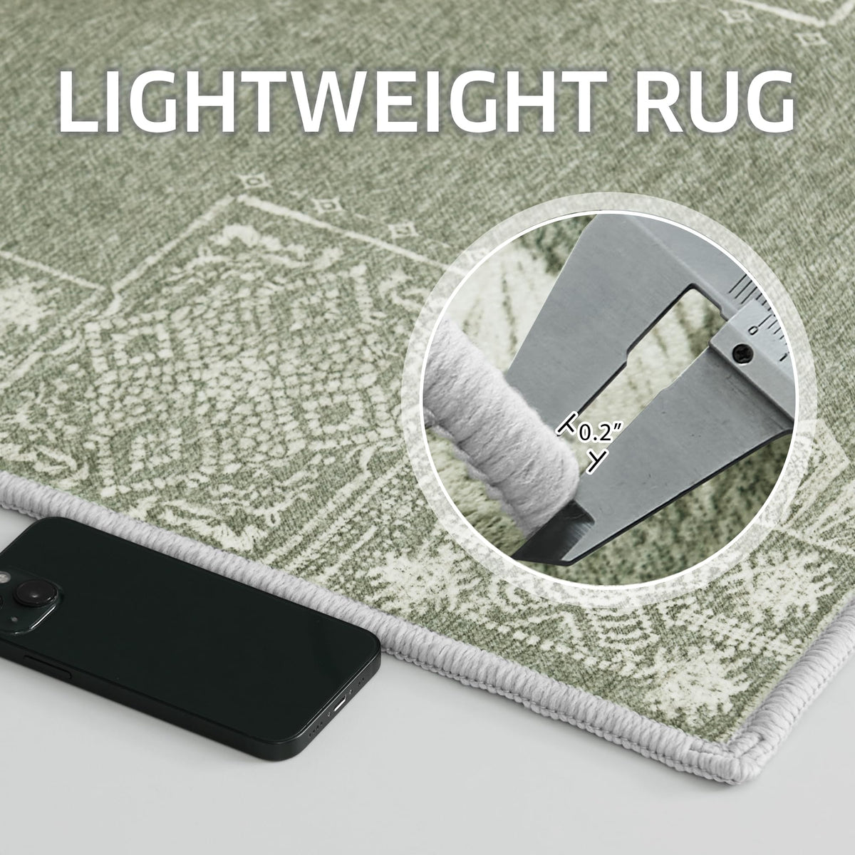 Q: What is the thickness of the rug and how does it affect door clearance?A: The rug has a thickness of 0.2 inches, which allows it to fit under doors without getting stuck, making it a safe choice for high-traffic areas.