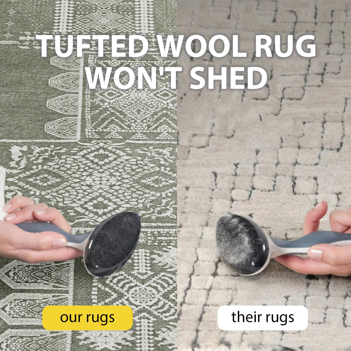 Q: What materials are used in the construction of this rug?A: The NICETOWN sage green rug is made from faux wool low pile materials, providing a soft, comfortable feel and ensuring it is stain-resistant and durable for everyday use.