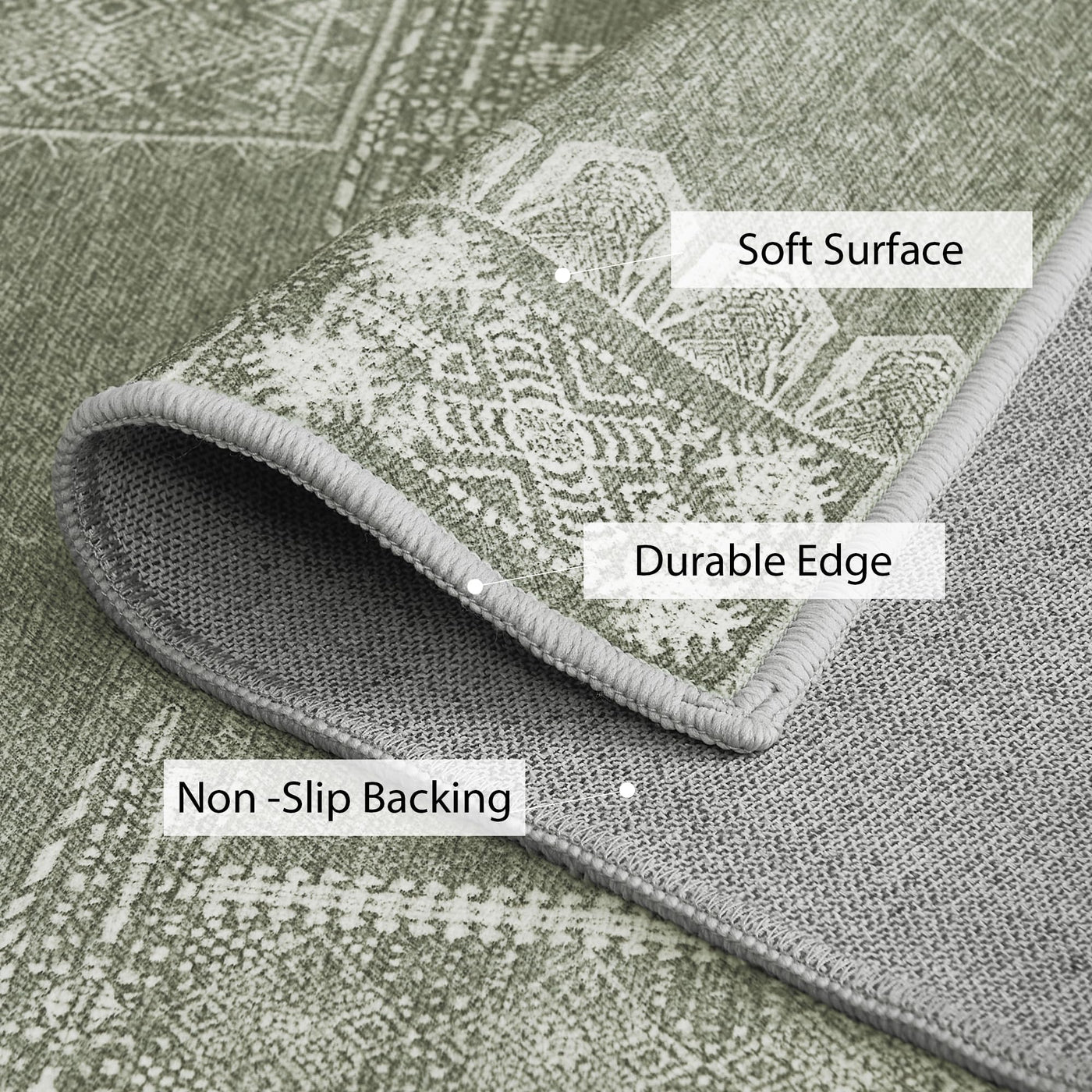 Q: Is the NICETOWN sage green rug washable?A: Yes, the NICETOWN sage green rug is machine washable, making it easy to clean after spills, pet accidents, or everyday dirt. Just throw it in the washing machine for effortless maintenance.