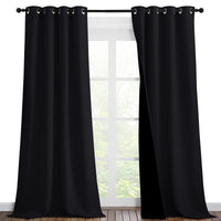 Nicetown Extra Long Truly Blackout Drapes For Hall And Villa, 46-Inch Width Each Panel, 96-Inch Length, Black, 2 Pieces, 100% Blackout Window Curtain Panels With Black Lined For Night Shift Worker