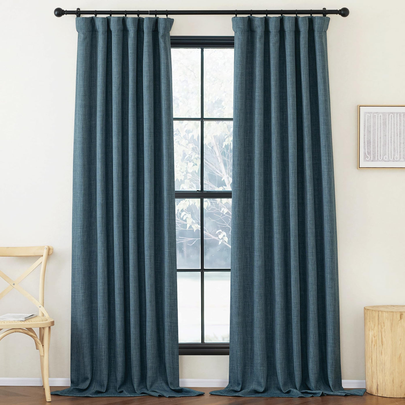 Nicetown Faux Linen Stone Blue Curtains For Bedroom 108 Inches Length, Pinch Pleated Room Darkening Light Blocking Sound Reducin