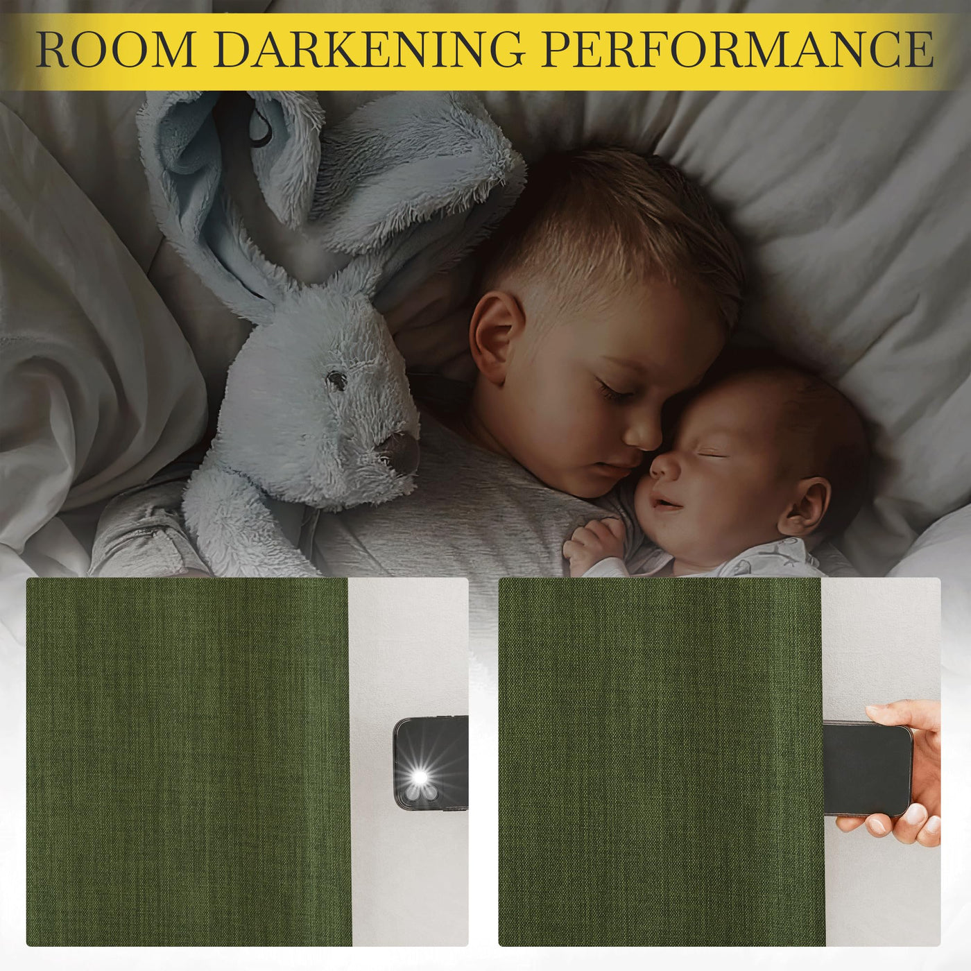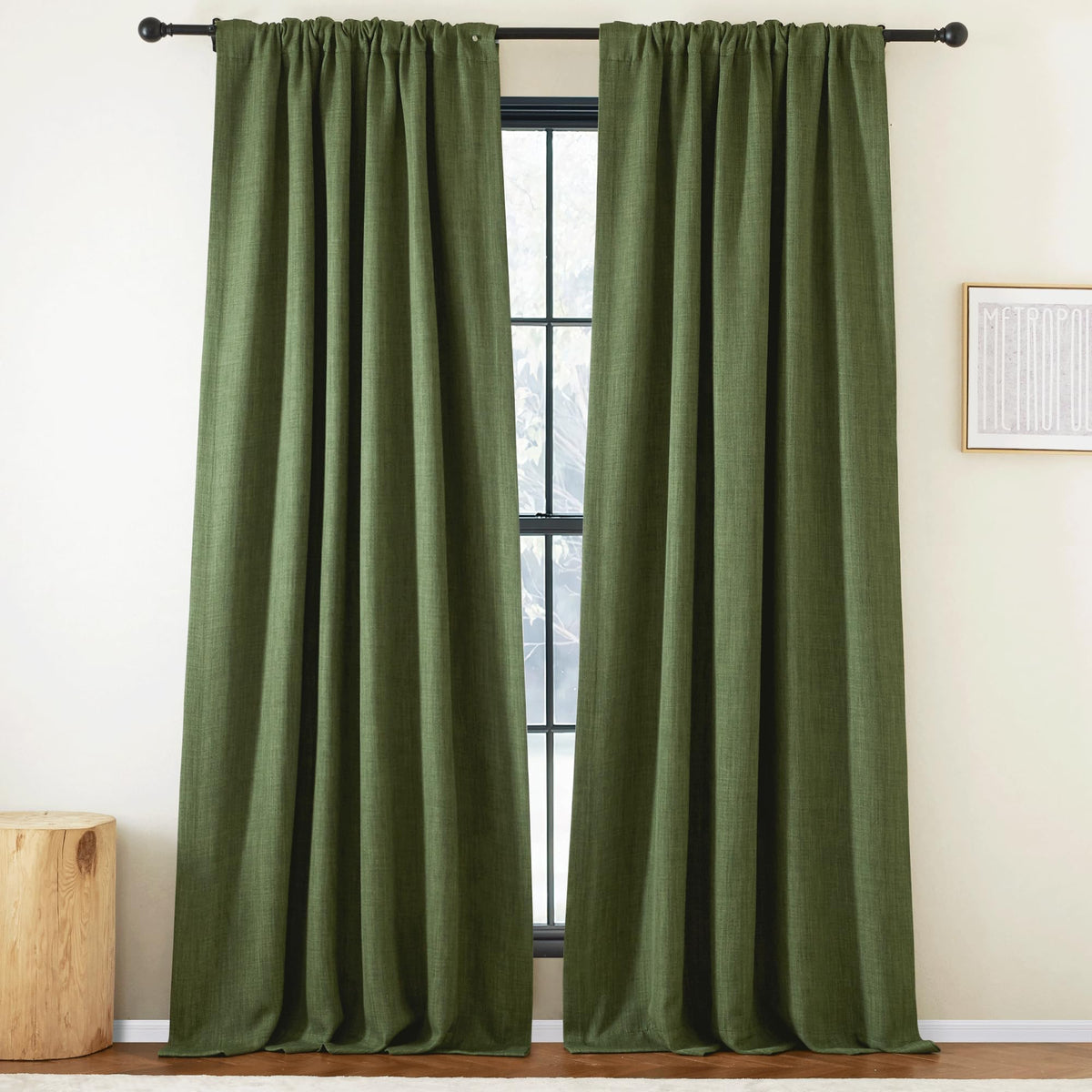 Nicetown Froest Green Room Darkening Curtains 90 Inches Long 2 Panels, Pinch Pleated Faux Linen Light Blocking Noise Canceling W