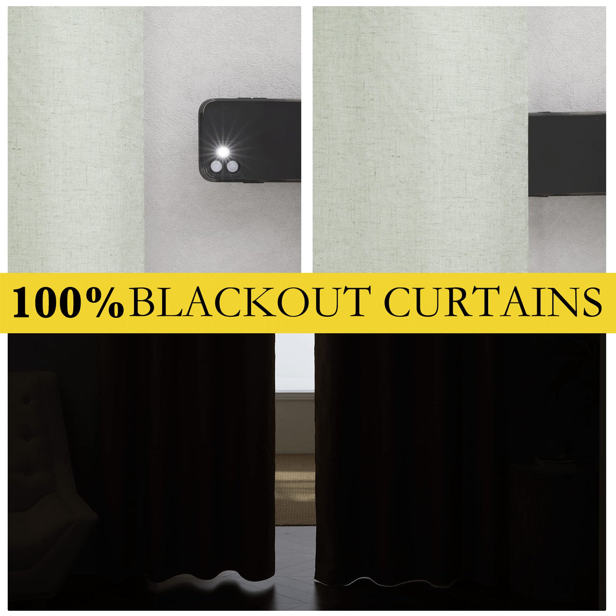 Nicetown Full Blackout Sage Green Linen Curtains 102 Inches Length With Thermal Insulated Liners For Living Room, 2 Panels, 52 Inches W, Farmhouse Style Keep Warm Large Window Draperies For Hall