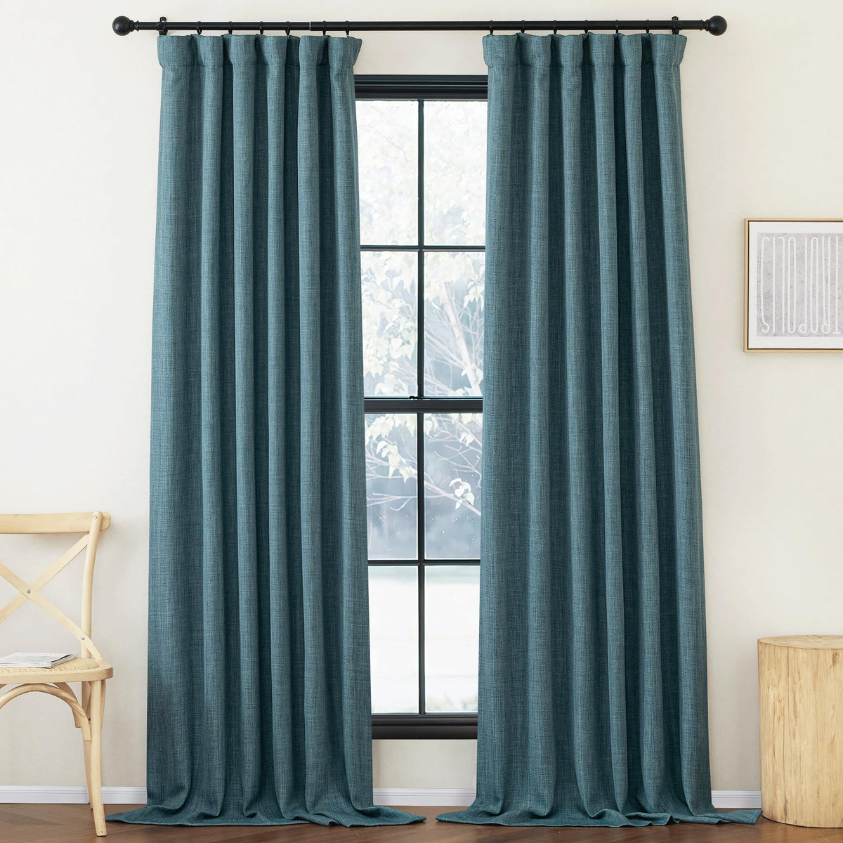 Nicetown Greyish Blue Room Darkening Linen Curtains For Living Room, Pinch Pleated Faux Linen Blend Thermal Insulated Sou/Noise