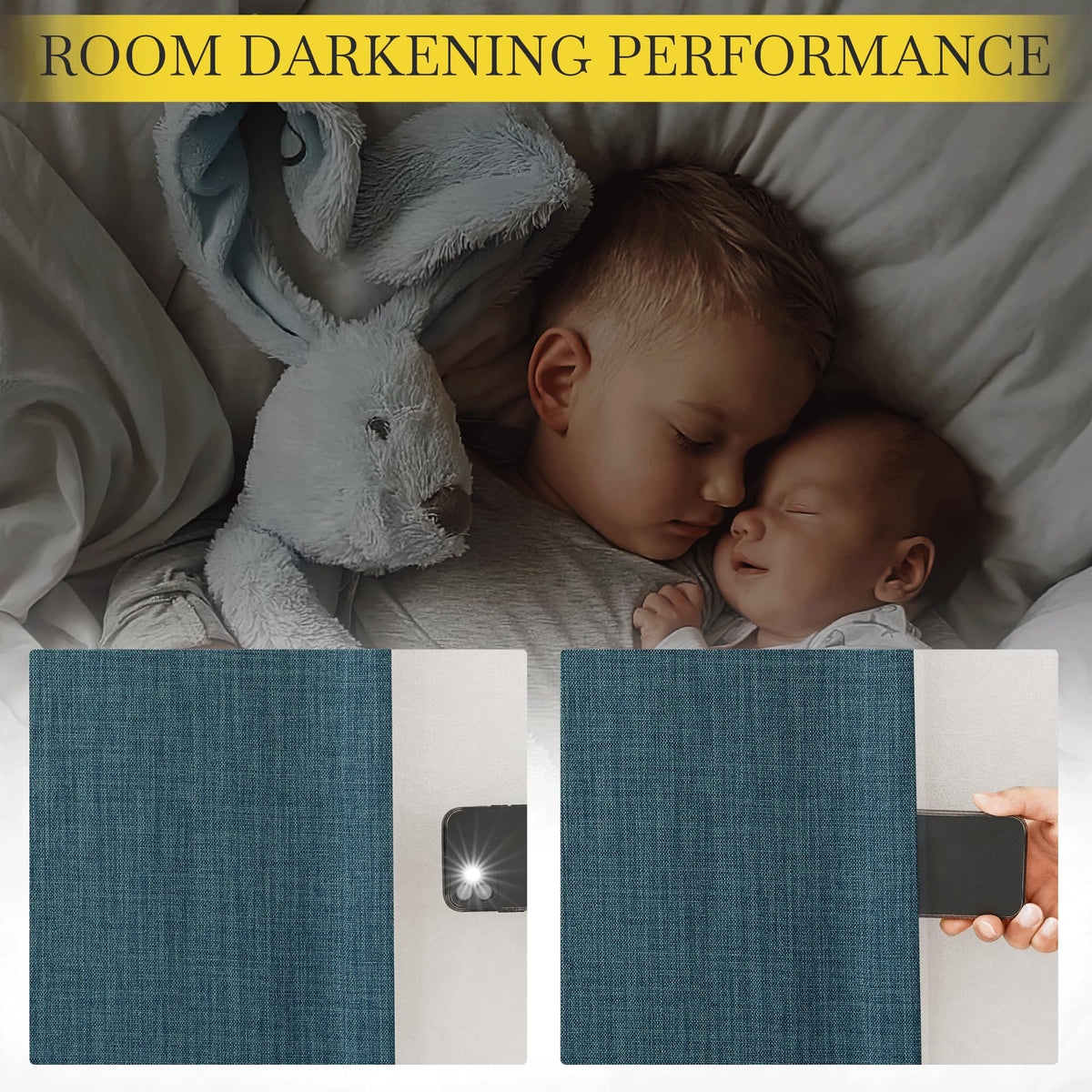 Q: How effective are these curtains at blocking light and noise?A: These curtains are designed with a luxury faux linen texture that effectively blocks most sunlight, heat, and noise, providing you with 100% privacy and a peaceful environment for sleep or relaxation.
