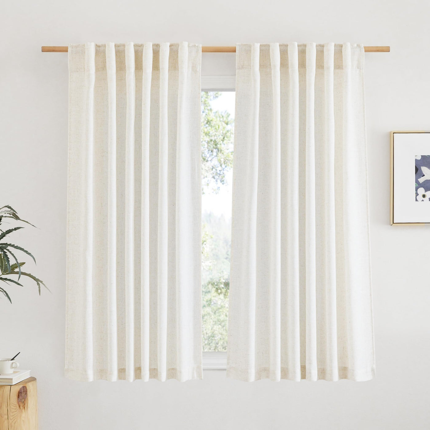 Do You Want A Curtain That Can Refresh Your Home Decor? Then Nicetown Natural Open Linen Weave Flax Sheer Curtain Will Satisfy Your Need.Nice Choice:Made By Hand And Made Of High-Quality Fabric Makes The Curtains Are Long-Lasting. More Size Choice For You Selects To Match Your Window. Each Package Includes 2 Panels Of Linen-Textured Curtains. Elegant Colors Can Match Any Color Of Blackout Curtains Well. Each Panel Has A 2' Inner Diam Rod Pocket & Back Tab Which Can Fit The Most Size Rods On The Market.The Curtain Material Is Soft And Environmentally Friendly, Making A Quite Natural Look To Your Windows And Rooms. Performance:Linen Textured Fabric Is Much Thicker Than Normal Sheer, Which Helps You Get Rid Of The Curious Sights From Outside And Protect Your Privacy Better. So You Can Enjoy A Happy Time With Your Family.Reduce Part Of Strong Sunlight And Uv Rays To Protect Your Furniture And Artworks. Formaldehyde-Free, They Can Be Used In The Nursery, Children'S Bedroom, Living Room, Study Room, And Other Places Where You Want Privacy But Still With Light Filter.Washing Tips:1. This Linen Look Sheer French Door Curtain Is Easy To Care For By Machine Wash In Cold Water And Tumble Dry.2. Quick Ironing Or Steam Cleaning If It Is Necessary. Do Not Bleach.Note: Due To Different Screen Displays, The Color Of The Actual Item May Vary Slightly From The Above Images.