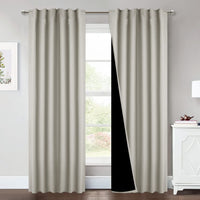 Nicetown Natural Living Room Completely Shaded Draperies, Privacy Protection & Noise Reducing Drapes For Laundry, Black Lined In