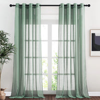 Nicetown Olive Green Curtains Linen Sheer Texture For Living Room, Grommet Semi Sheer Linen Blend Vertical Drapes Privacy With L