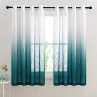 Nicetown Ombre Sheer Curtains Teal For Windows 63 Inch Long, Grommet Decorative Sheer Linen Curtains Semitransparent With Light