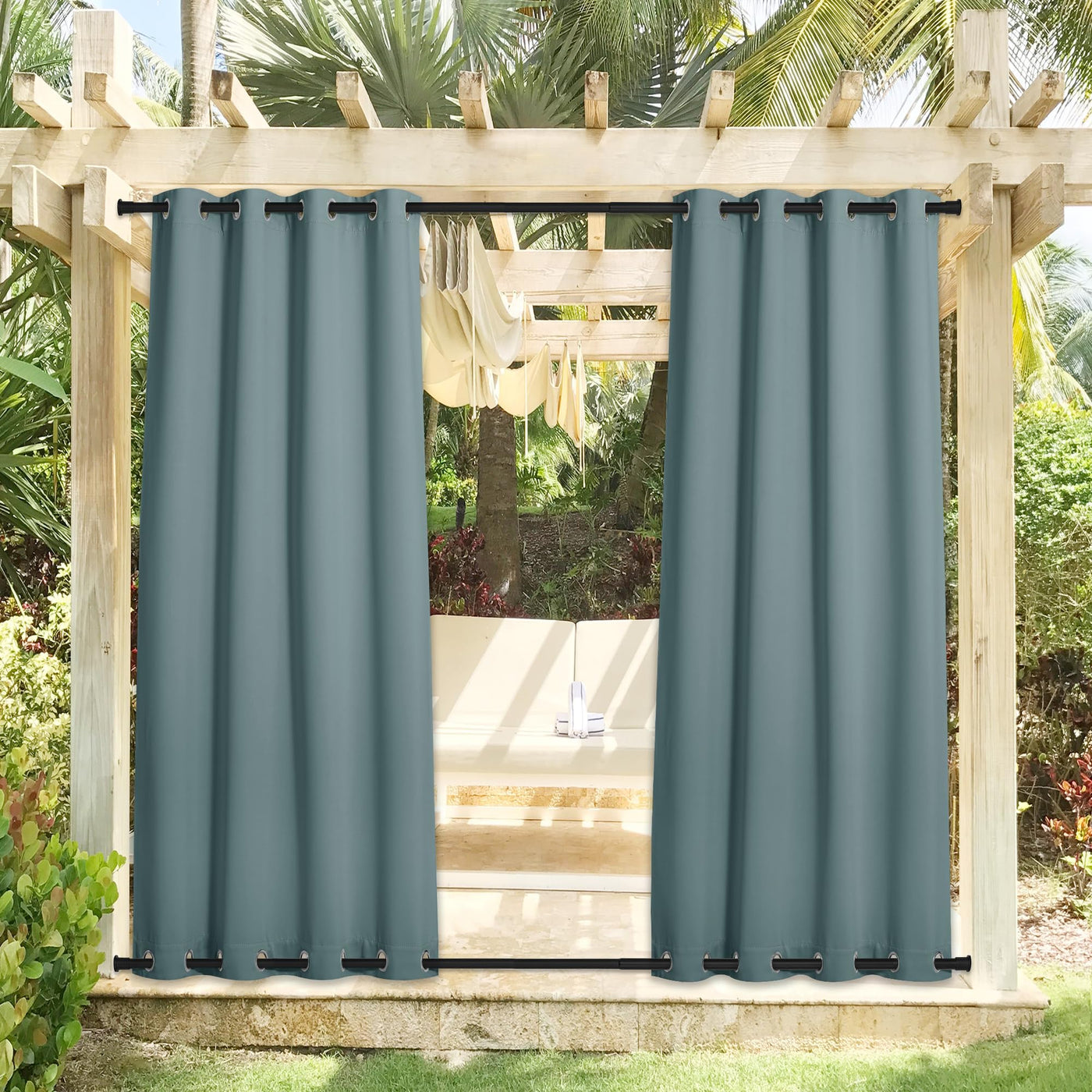 Nicetown Outdoor Curtains For Patio Waterproof & Windproof 2 Panels, Thermal Insulated Top And Bottom Fixed Rustproof Grommets L