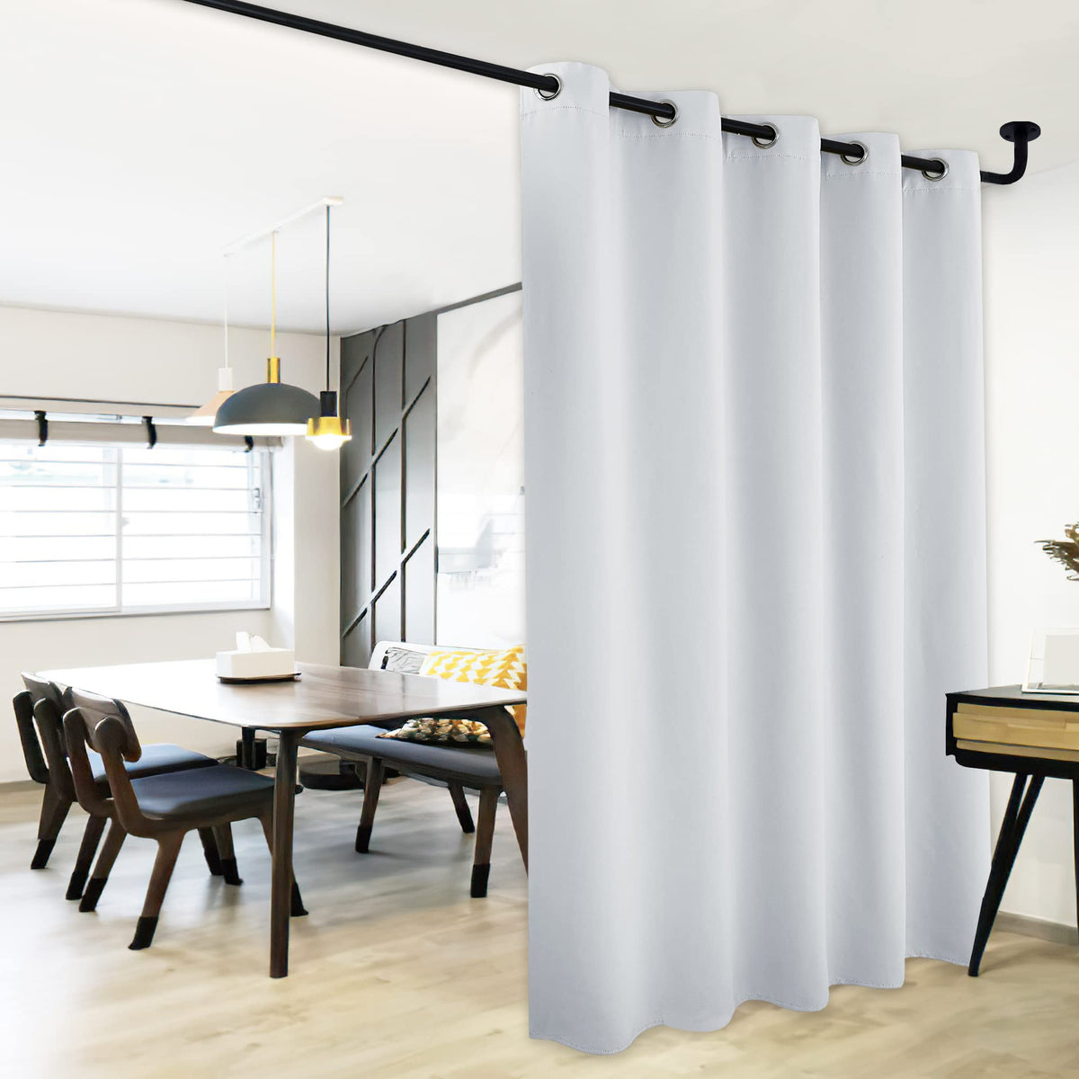 FABRIC & DESIGN Super soft innovative triple-weave 200 GSM polyester fabric feels thick and expensive. The same material back as of front makes it appear more elegant. The sliver Grommet top (inner diameter is 1.6-inch) adds a modern touch and fits various standard curtain rod.
