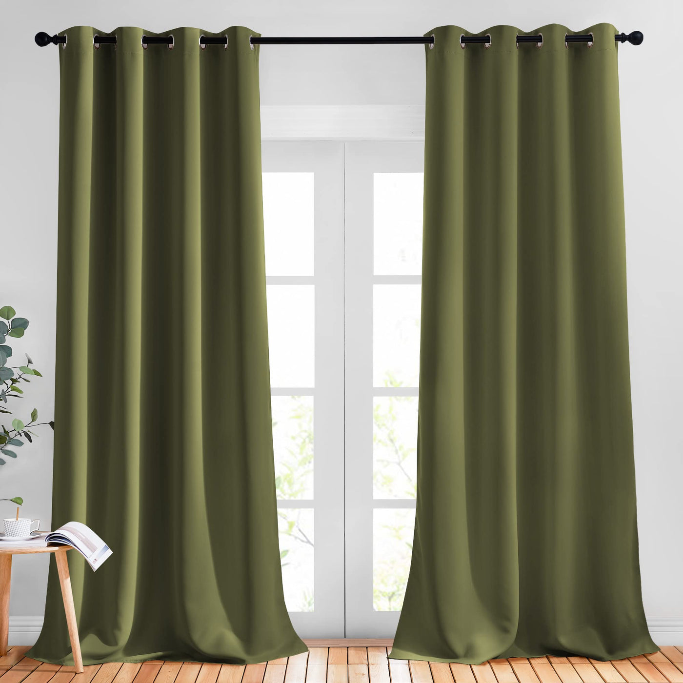 Nicetown Patio Glass Door Panels - (52 Inches Wide X 108 Inches Long, Olive Green, 1 Pair) Blackout Curtains For Holiday Decor,
