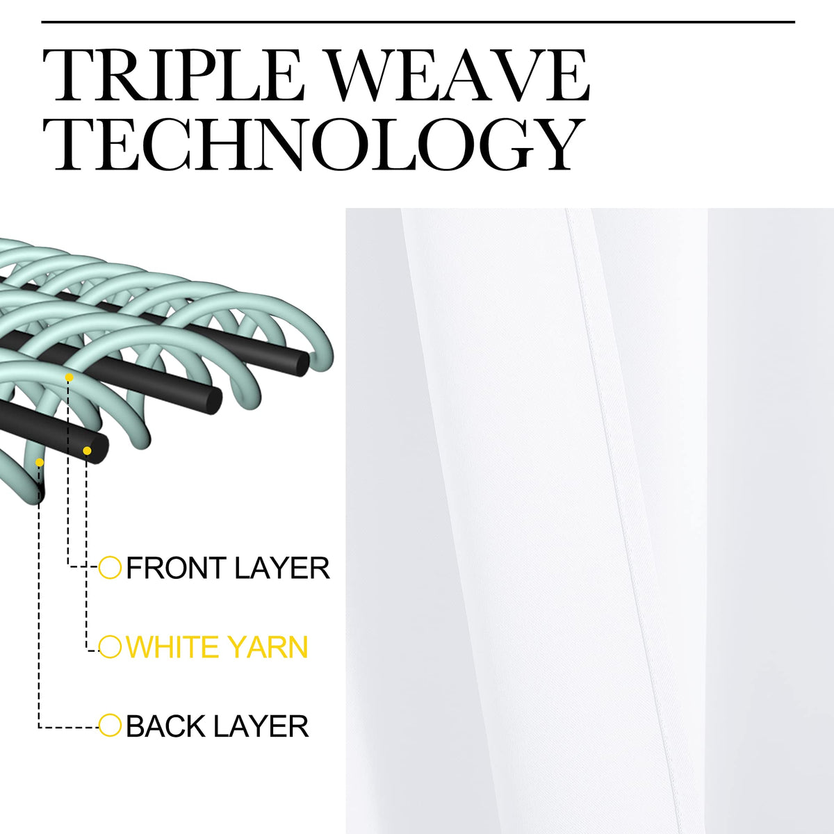 FABRIC & DESIGN Super soft innovative triple-weave 200 GSM polyester fabric feels thick and expensive. The same material back as of front makes it appear more elegant. The sliver Grommet top (inner diameter is 1.6-inch) adds a modern touch and fits various standard curtain rod.