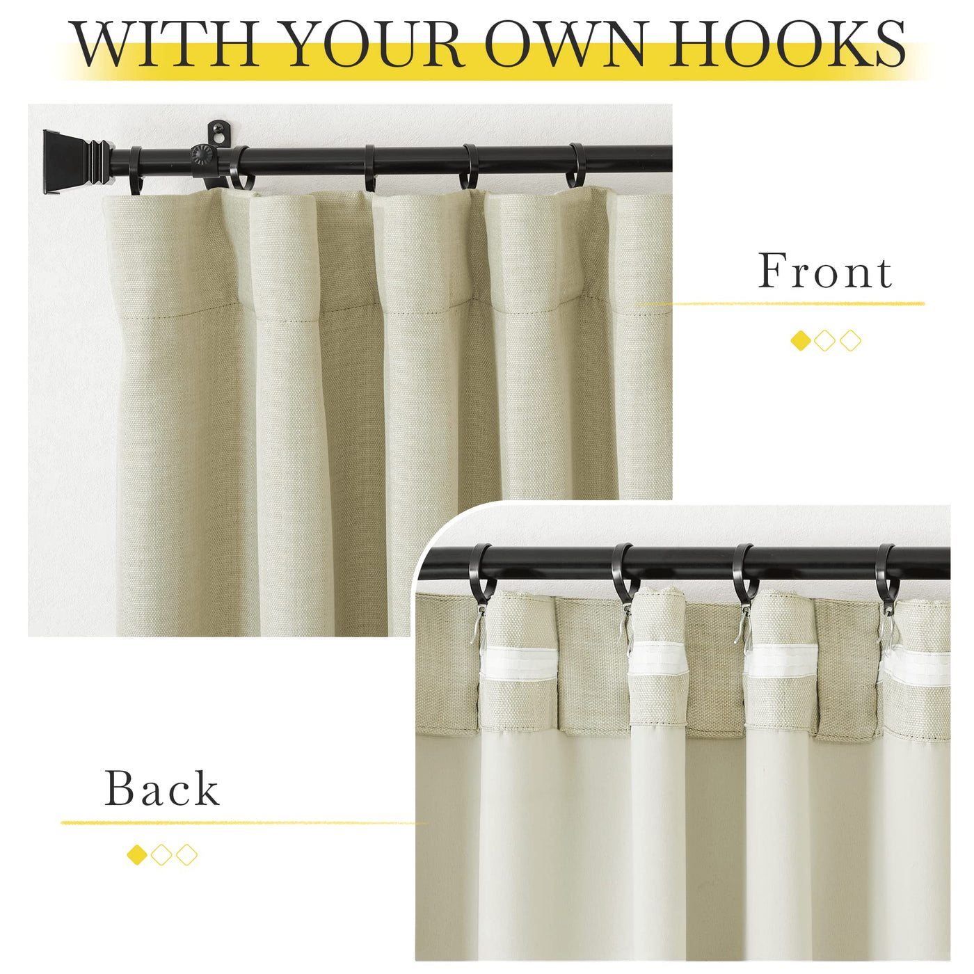 This Nicetown Faux Linen Blackout Curtains With 3 Hanging Options Design Can Provide A Stylish And Casual Look To Your Home Decor With A Refined Sense. Well Styled:You Can Hang The Curtains With Rod Pocket, Back Tab, And Hook Belt To Lend Your Windows Some Whimsical Texture And A Fanciful Look With Pinch Pleated Drapes And Curtains .Good Performance:The Fabric With Faux Linen Blend Will Block Most Of The Sunlight Out So That You Will Get A Good Sleep Or Rest At Day. The Weave Of The Yarn-Dyed Fibers Creates Dimensional Highs And Lows For Added Depth. These Curtains Are Casual & Rustic Options For Any Room In The Home.Easy Care:These Room-Darkening Window Curtains Are Available In Machine-Washable Fabrics For People Who Prefer Easy Maintenance. Hang Your New Drapes Using The Tabs Or Rod Pocket Design, Or Use Small Hooks To Let Them Gently Hang Downward. You'Re Bound To Find The Ideal Curtains For Your Home That'Ll Update Your Space In The Chic Form.